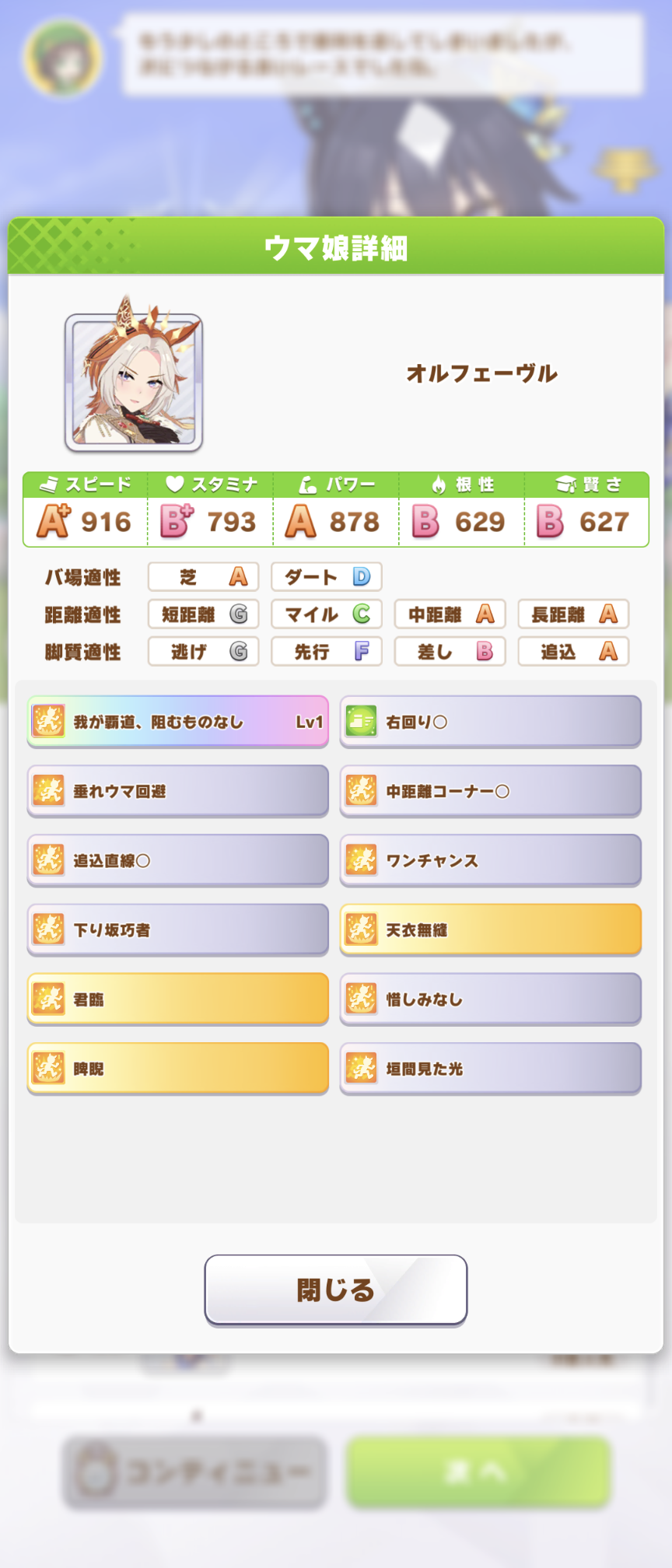 スピ特化+アンスキを始めとしたスキルを全力で積んでどうにか桜花賞は抜けられたけどオークスがマジで無理…