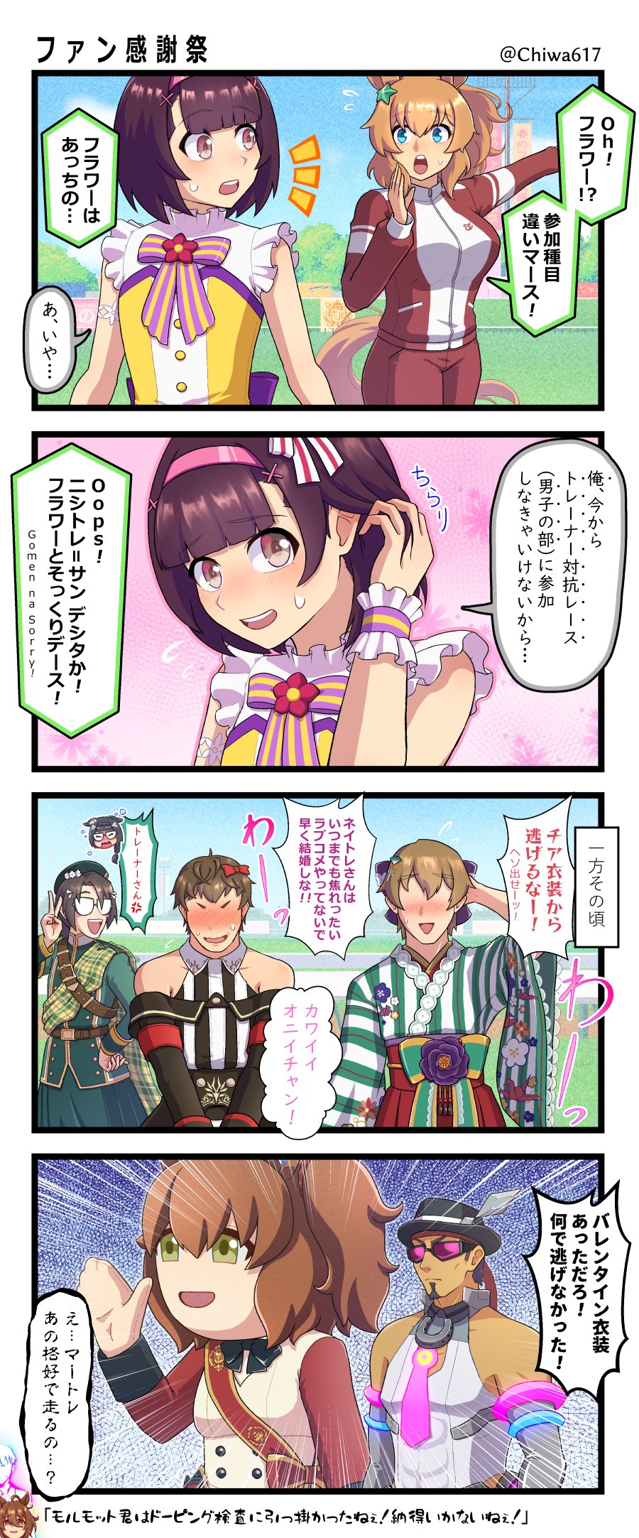 自分の担当ウマ娘に『君がチャイナドレスを着ている姿が見たいなぁ〜w』って冗談半分に言ったら、なんだかんだと言いくるめられて俺が着る羽目になった上に、他のトレーナー達まで巻き込んで【春のトレセンチャイナドレスステークス】なんてレースが行われる事になっちまった。