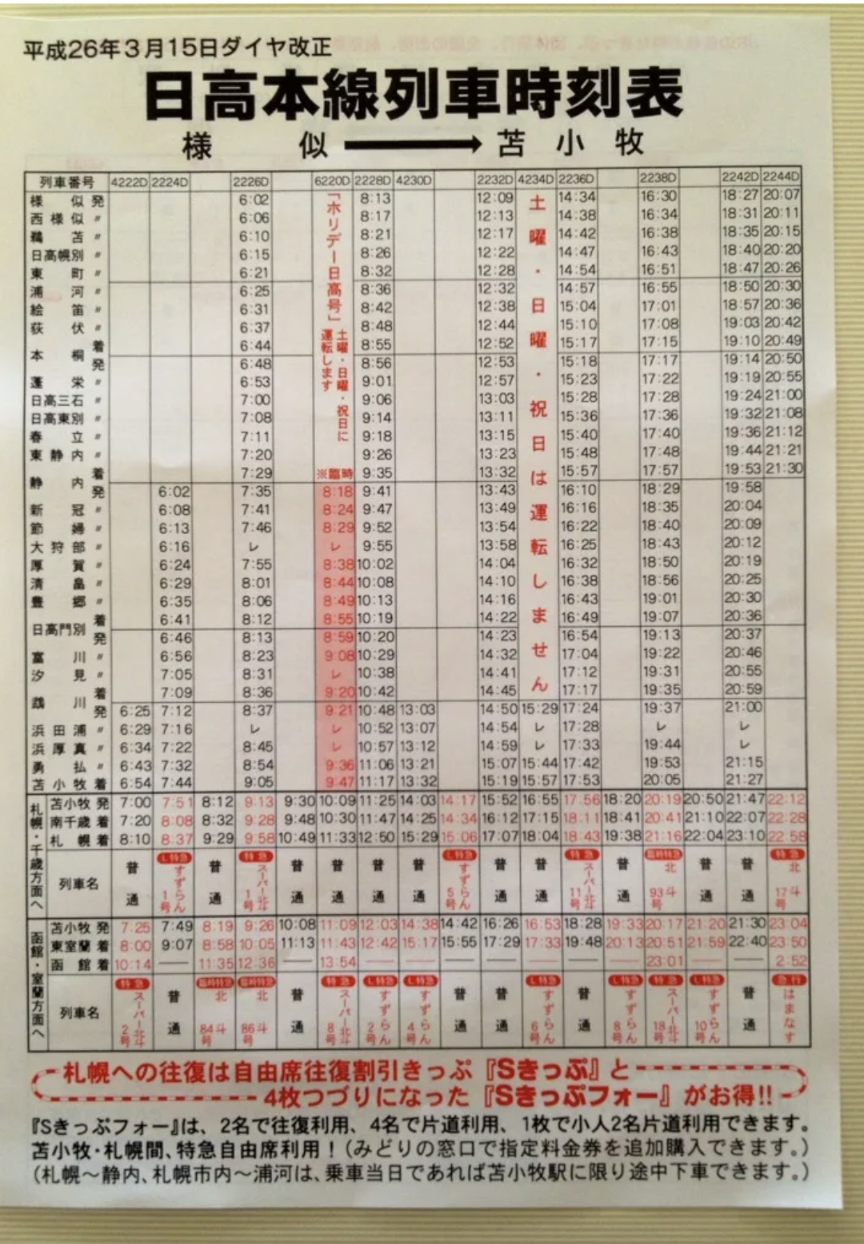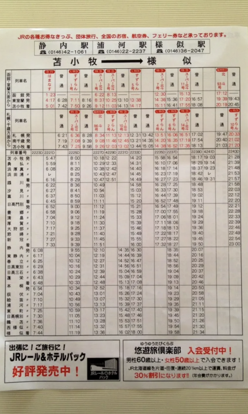 「待って!あきらめるのはまだ早いよ!23:56発の上り普通列車を使って2駅戻ると0:07発の下り急行に間に合う。普段なら間に合わないところだけど今日は9753Mって臨時列車が走ってるからダイヤがずれるんだよ。ほら、この時刻表を見て。書いてないけど23:36に貨物列車があるから9753Mをスジに入れると後続の673Mが2分遅れるだろ」