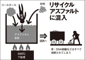 アスファルト=すぐ乾いて通行できるが、コンクリートほど耐久性が無い