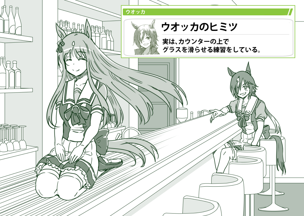 グラスを滑らせる練習をするウオッカ