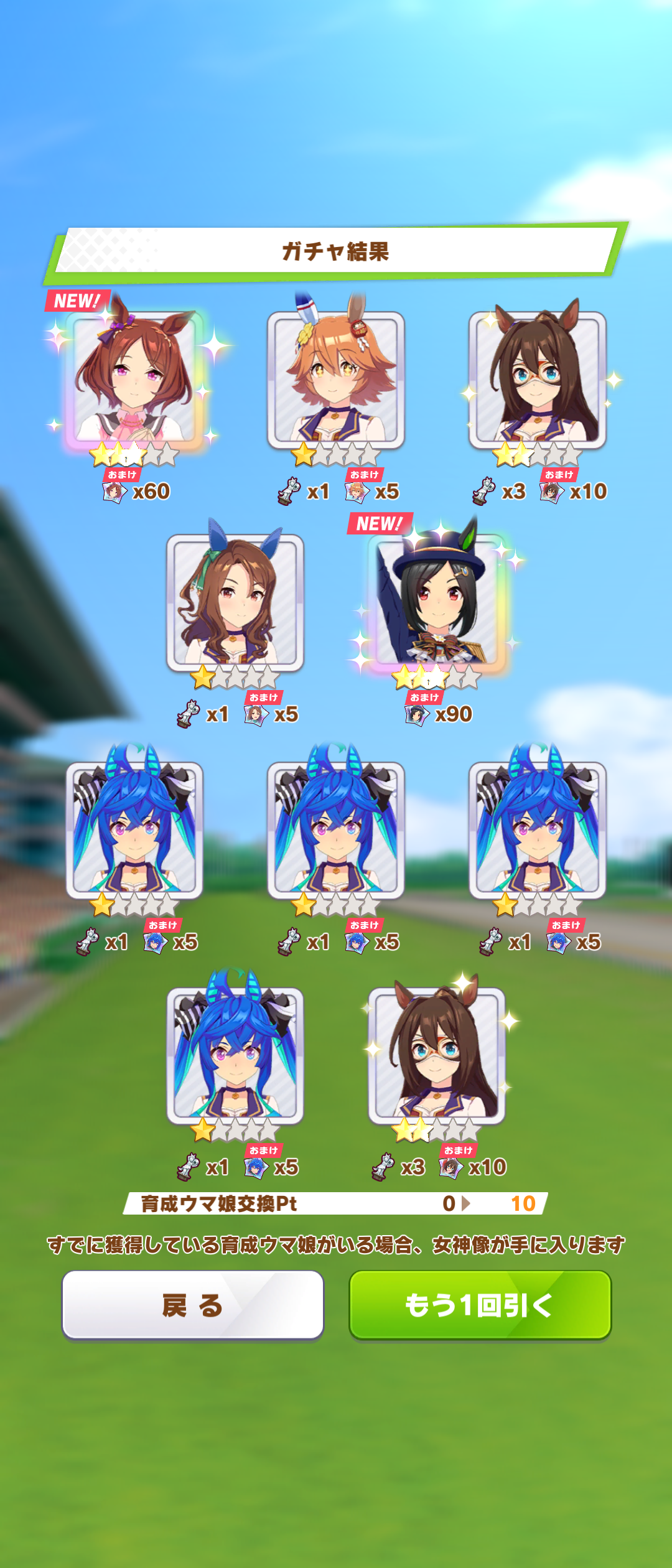 自分はファミマコラボの時にまんまる焼き買ったらスズカさんのステッカー出て、うまよんのコードで貰ったメイクデビューガチャでスズカさん出たくらいだわ…