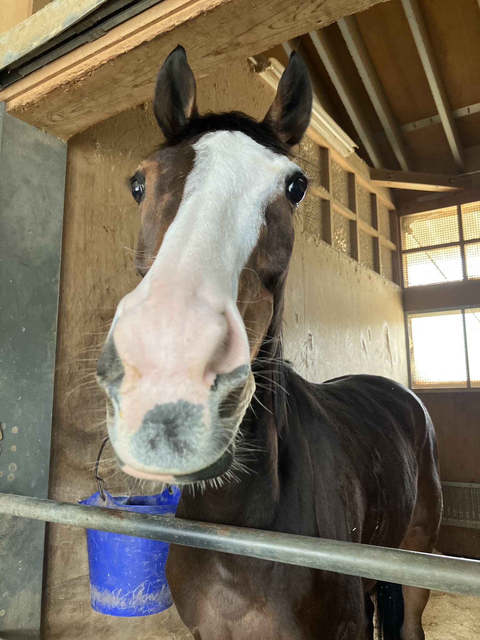 ボクの好きなタイプの馬は、と言えば、顔のちっちゃな馬である。そして耳が敏感な馬。目は瞳が大きくて、澄んだ明るい目。白目をむき出してギョロギョロあたりを見回しているのは好きではない。被毛の色でいうなら鹿毛。