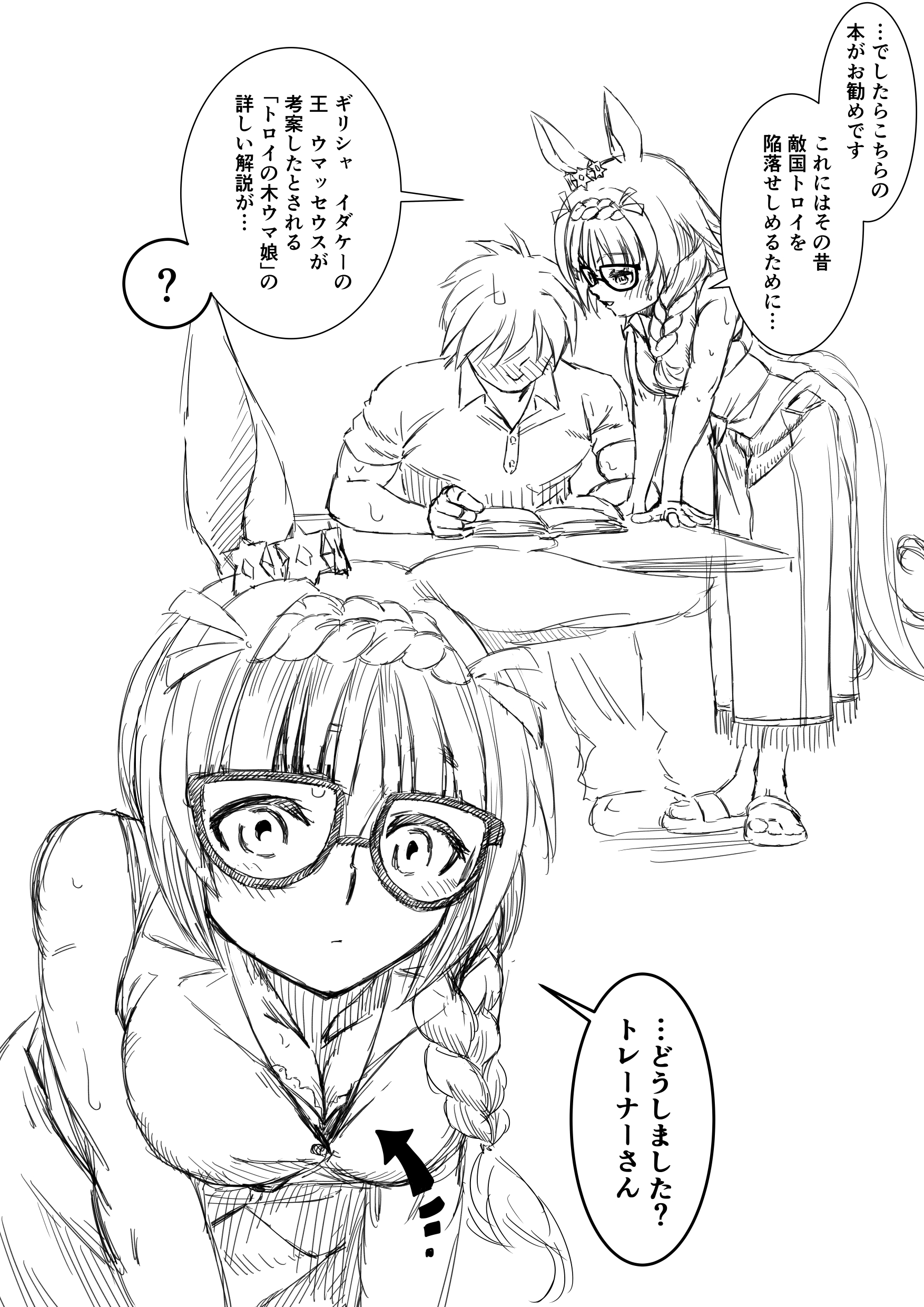 次は三つ編み下ろした姿も描いて♡メガネ無しでね♡