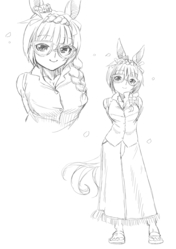 全身絵。眼鏡三つ編みあり版となし版。