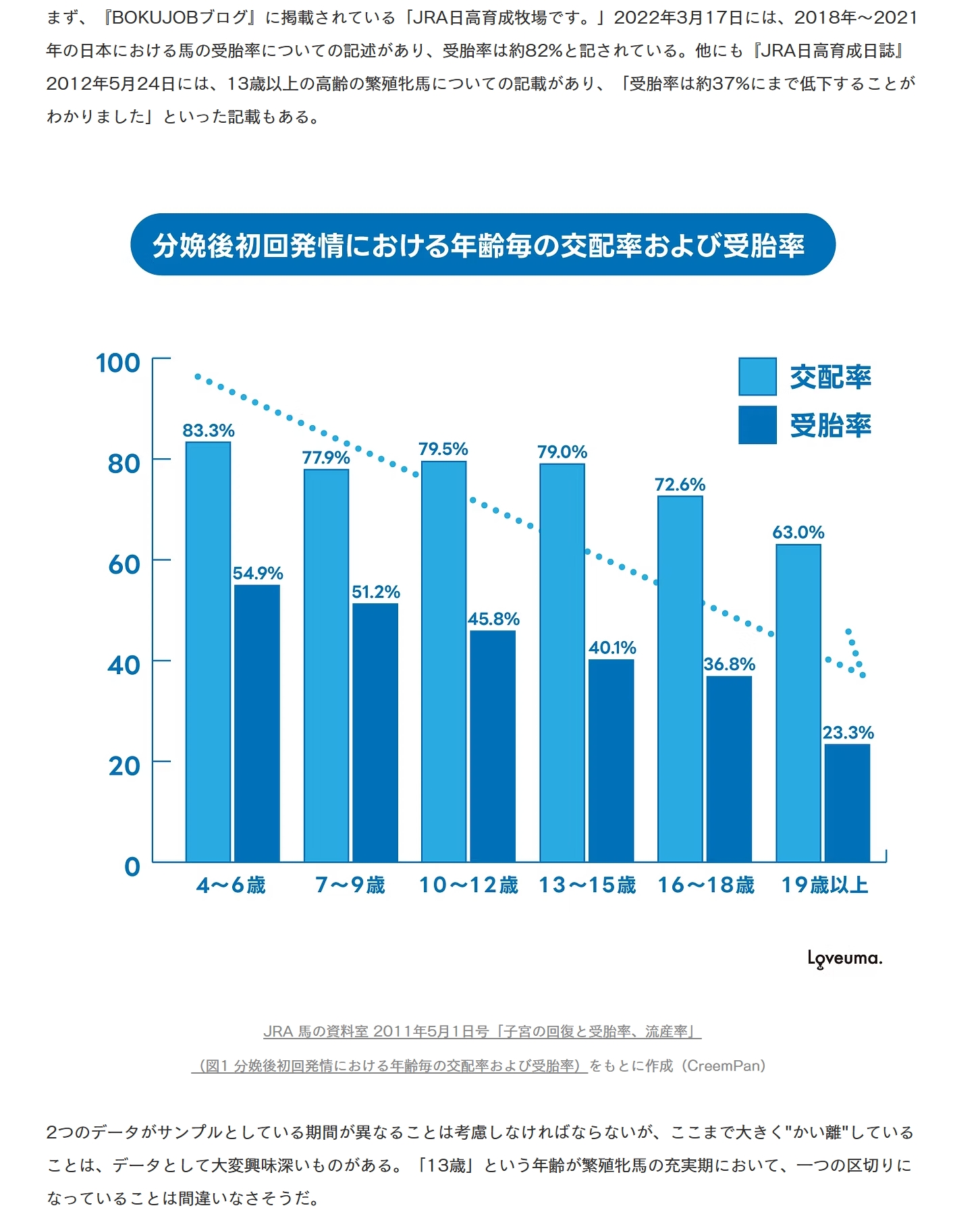 受胎率や重賞馬輩出の観点で言えば14~16歳くらいまでがひとつのラインなんじゃね?って見解はあるみたい