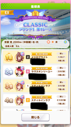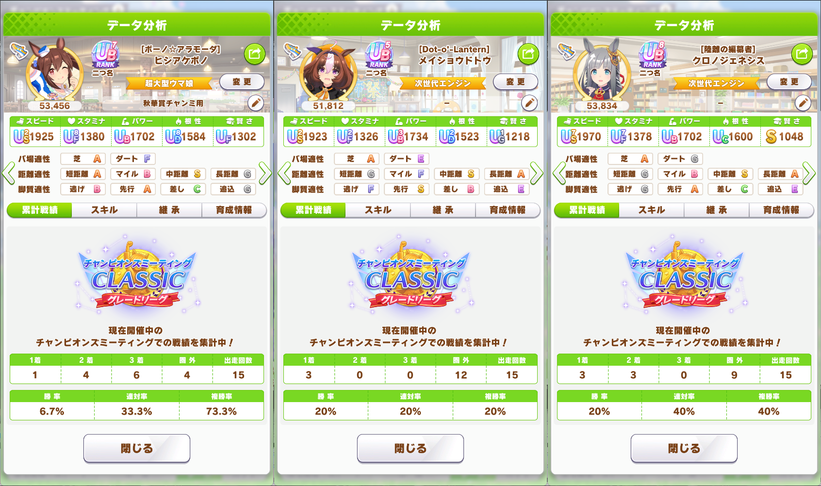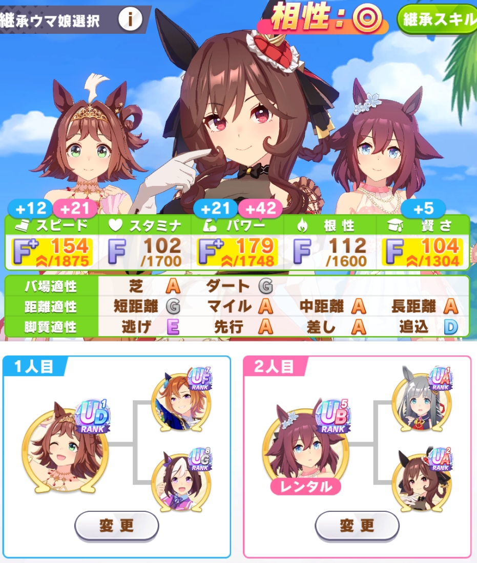 この条件でフレンドのチヨを他のフレンドや手持ちに替えても〇だったのは長距離向けカフェとかマイルスズカとかごく一部(いずれも祖まで含めほぼノルマ勝利のみ)