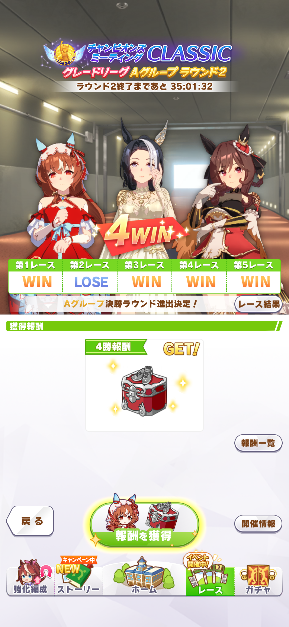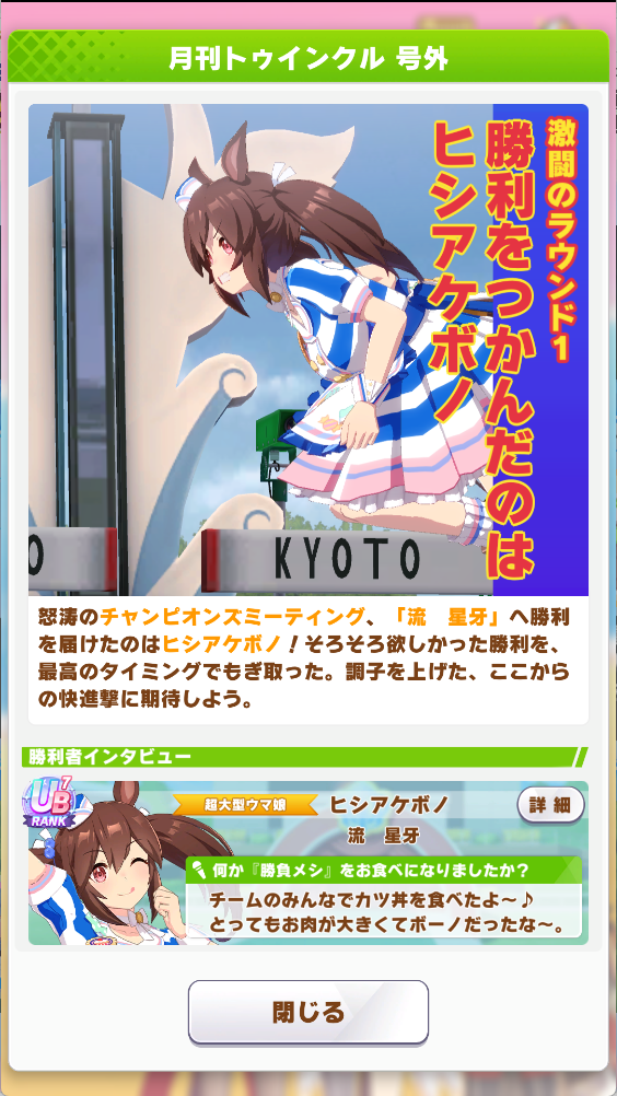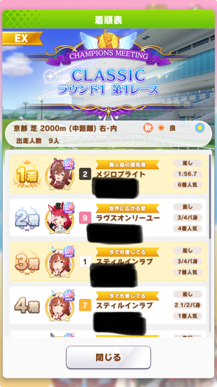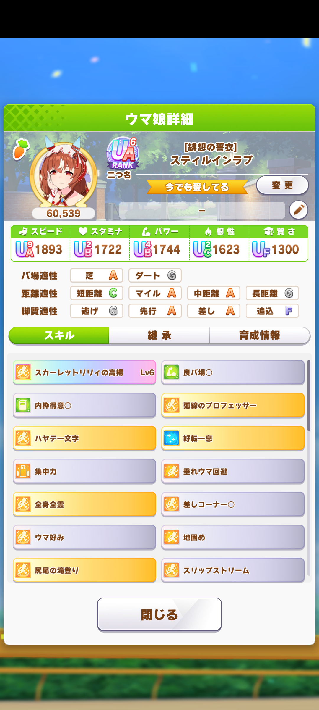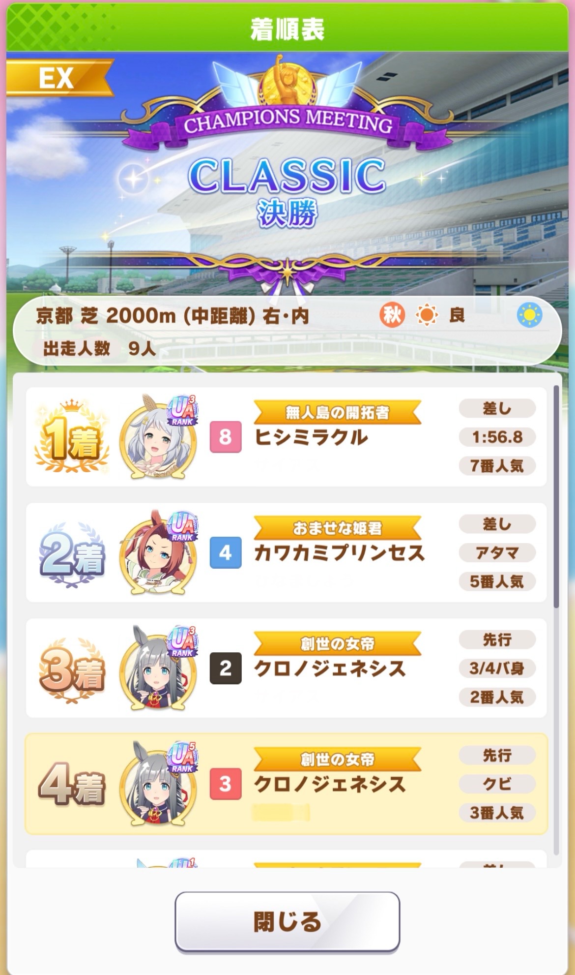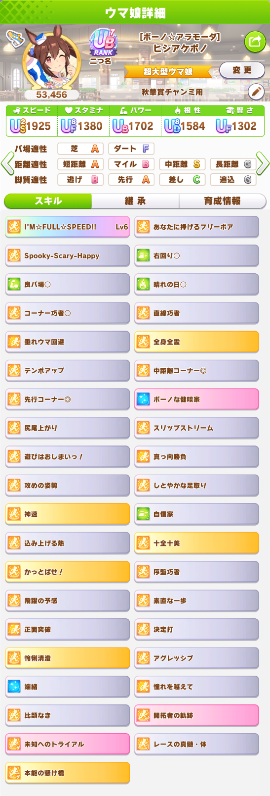 ともあれ次は久々の短距離チャンミ、しかもスキル進化来てから初だっけか?頑張ろう