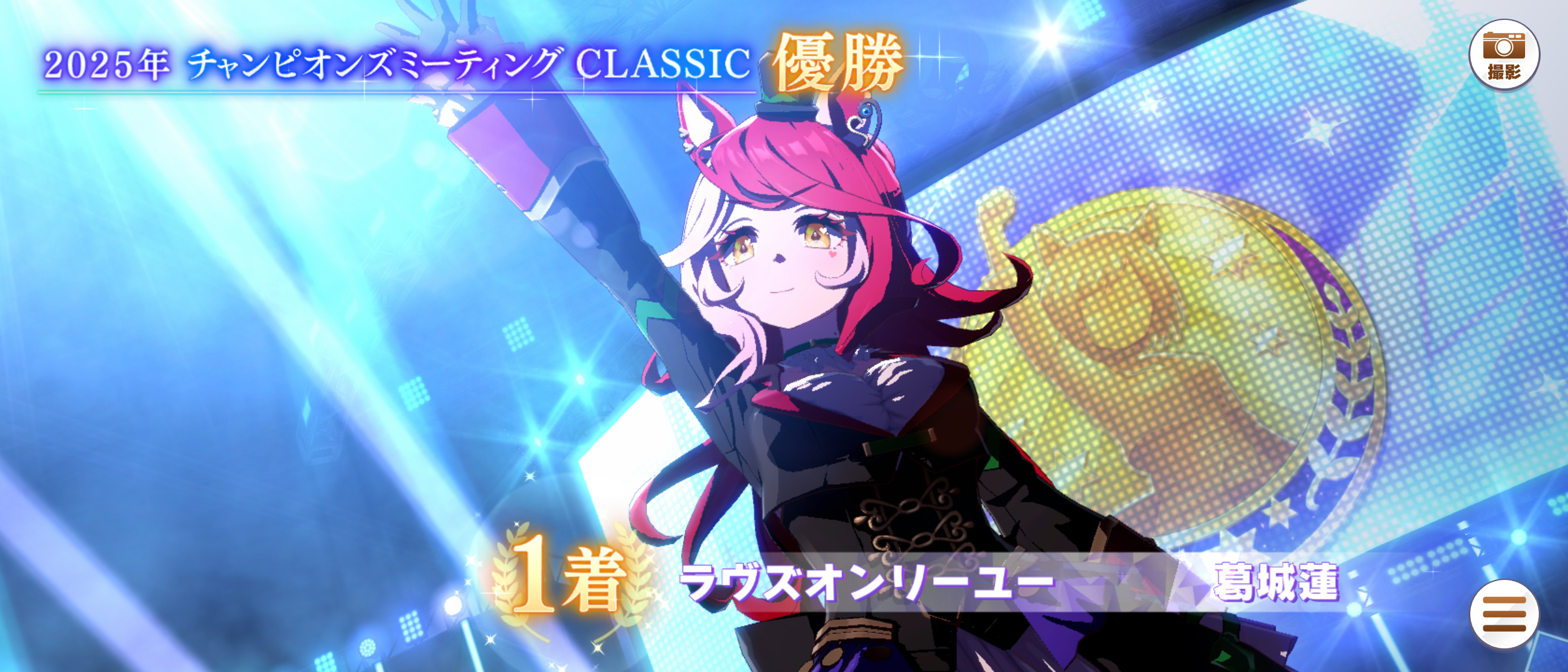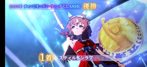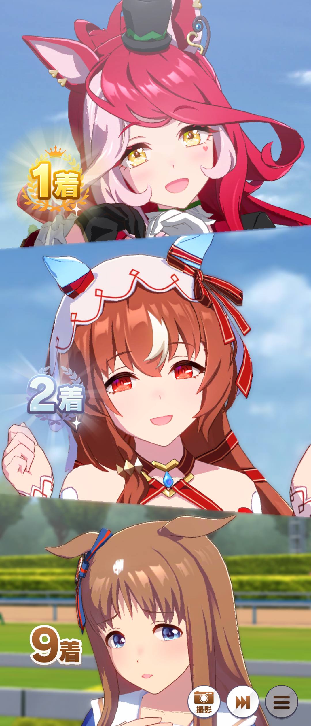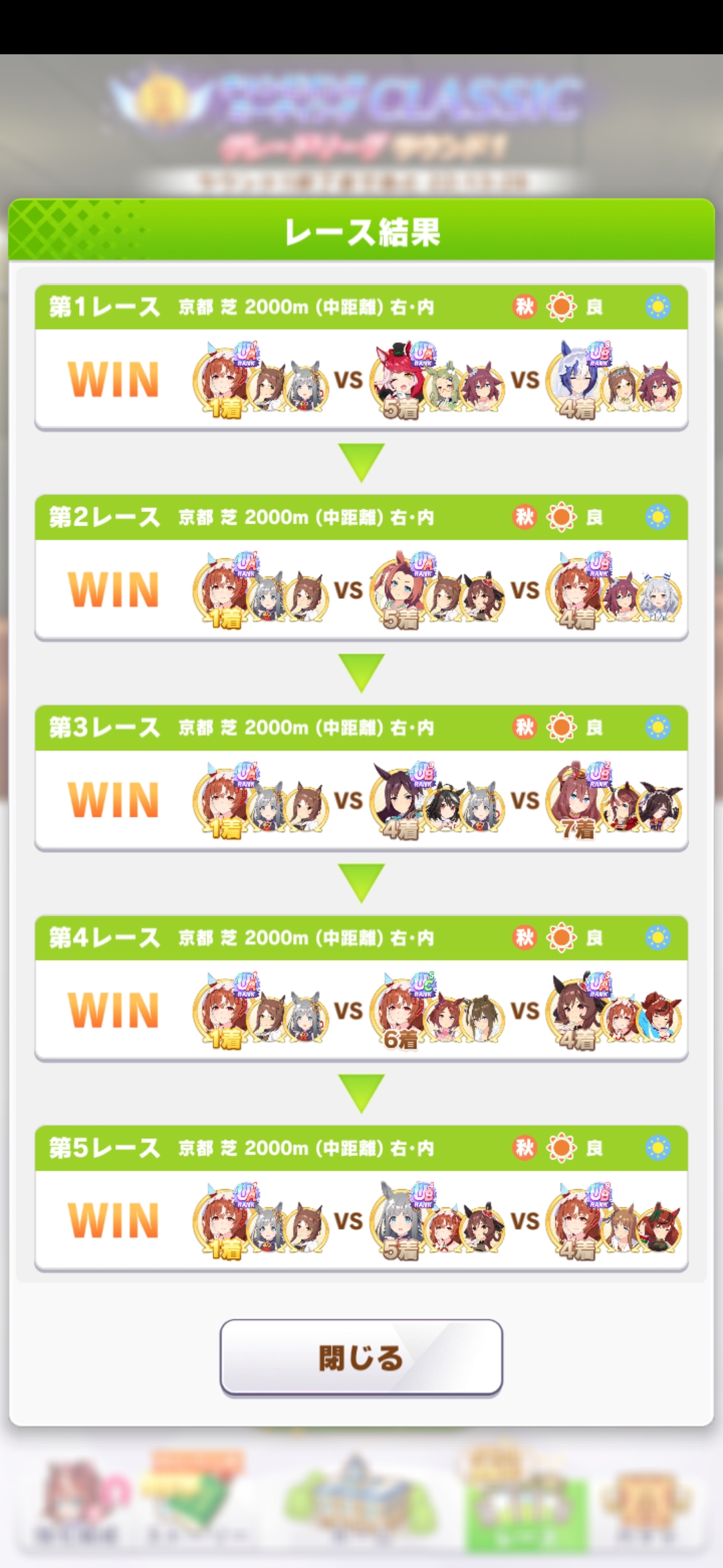 相手の編成は大逃げスズカさん、チョコアイネス、ドンナ。こちらは大逃げ水着スズカさん、ドンナ、スティル。ハナを取らなければ確実に負ける中、なんとスズカさんは掛かってくれて、それもあってかハナを取ることに成功。さらにそのまま最終コーナーまで先頭に立ち続け、アイネスに抜かれる前にギリギリで固有やアンスキを発動。アイネスに先頭を譲るもすぐに取り返し、そのまま最終直線を突っ走っていく。その裏で、うちのジェンティルも3番手につけていた。そしてゴール版直前でうちのドンナ、そして相手のドンナがスズカさんを差していった……3/4馬身差でうちのドンナが1着、続いて相手のドンナ、うちのスズカさん。グレBとはいえあまりにも怒涛の展開で、見ててすごく興奮したし、こういう形で勝てるとは思ってなかったから、ほんとに嬉しかった