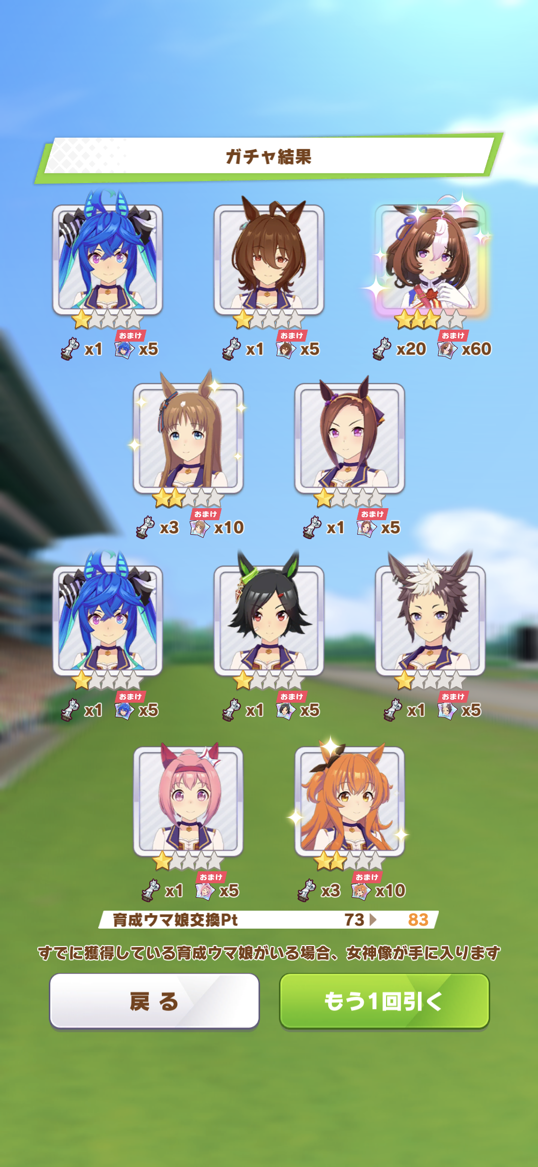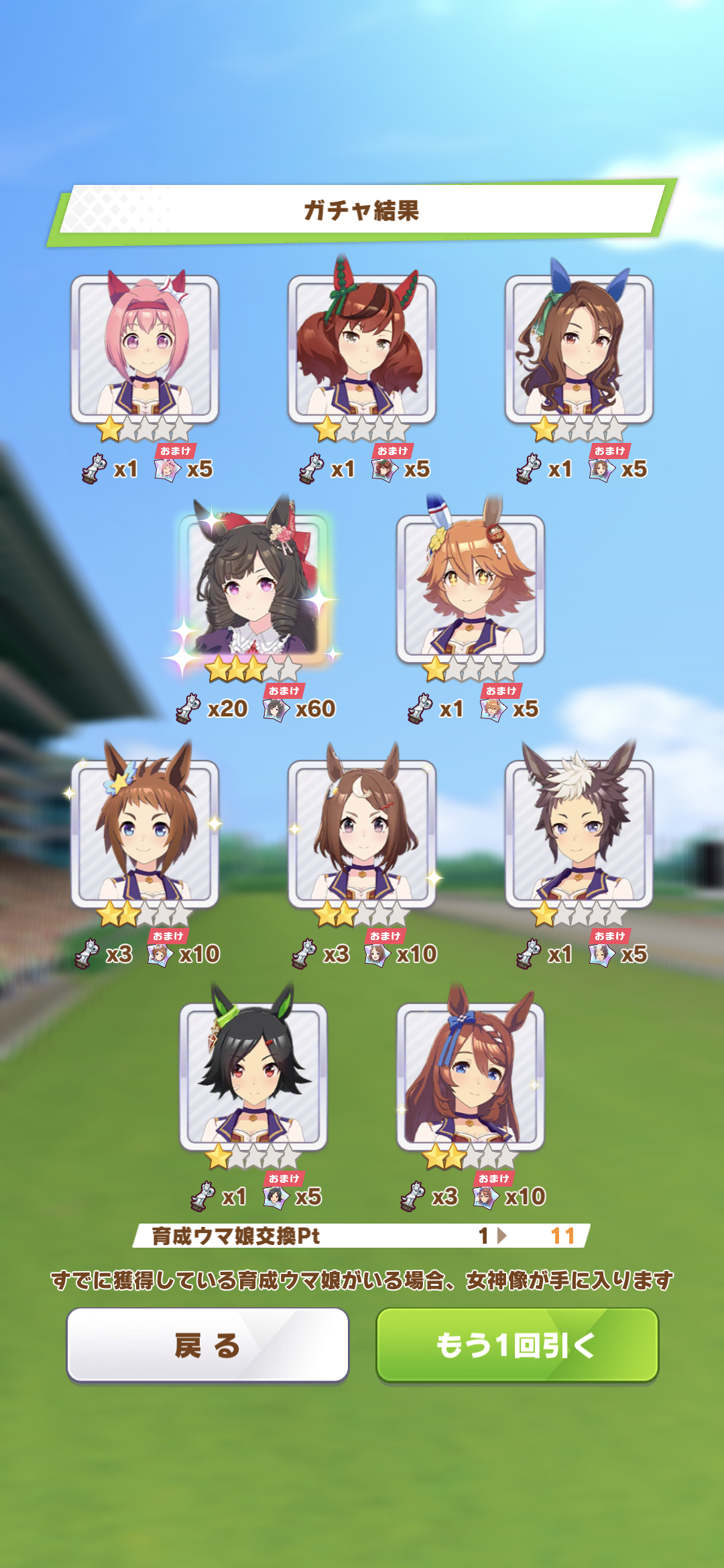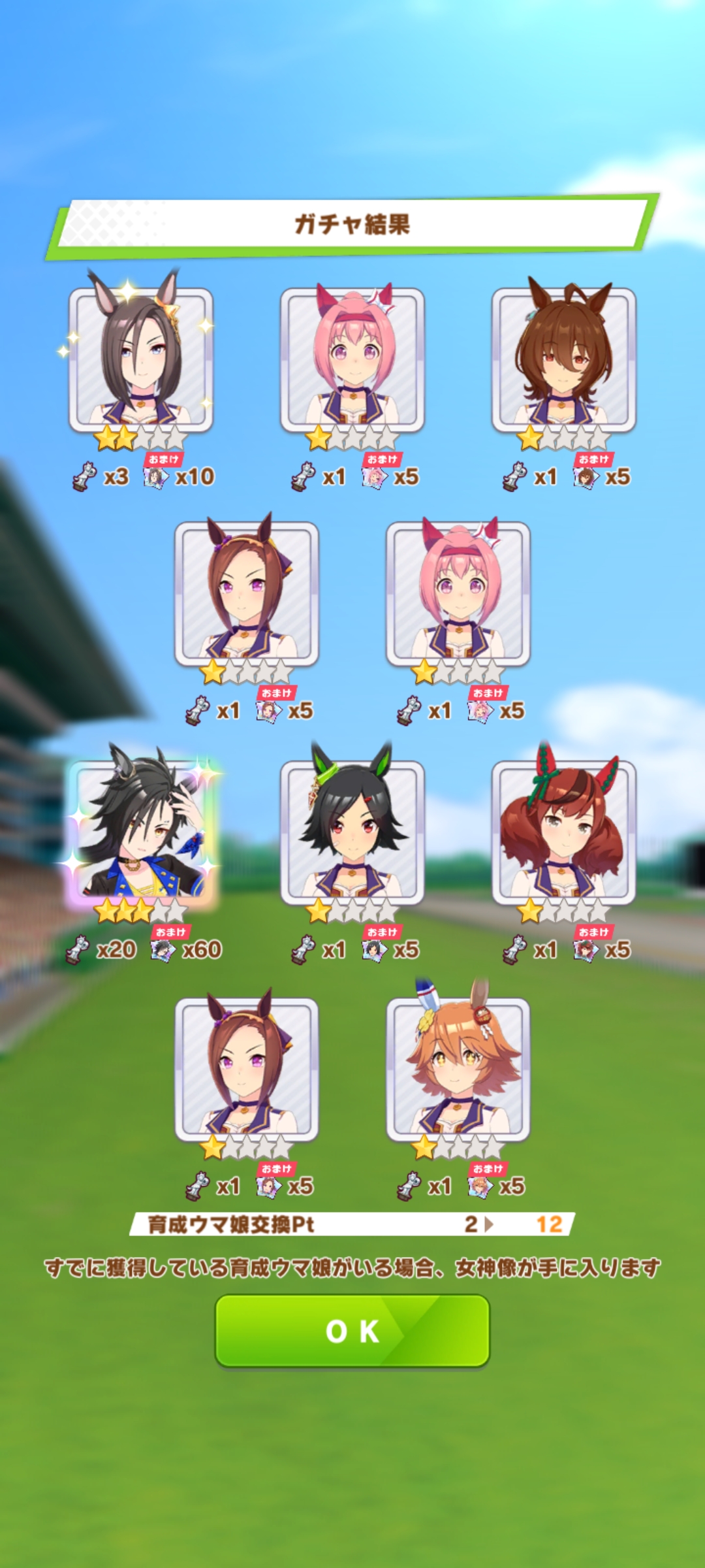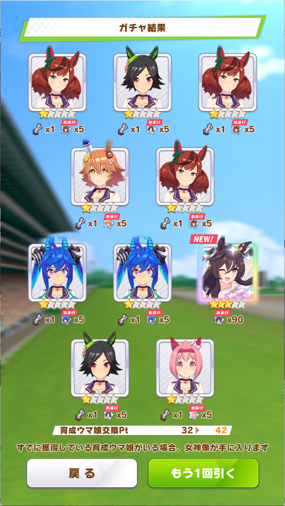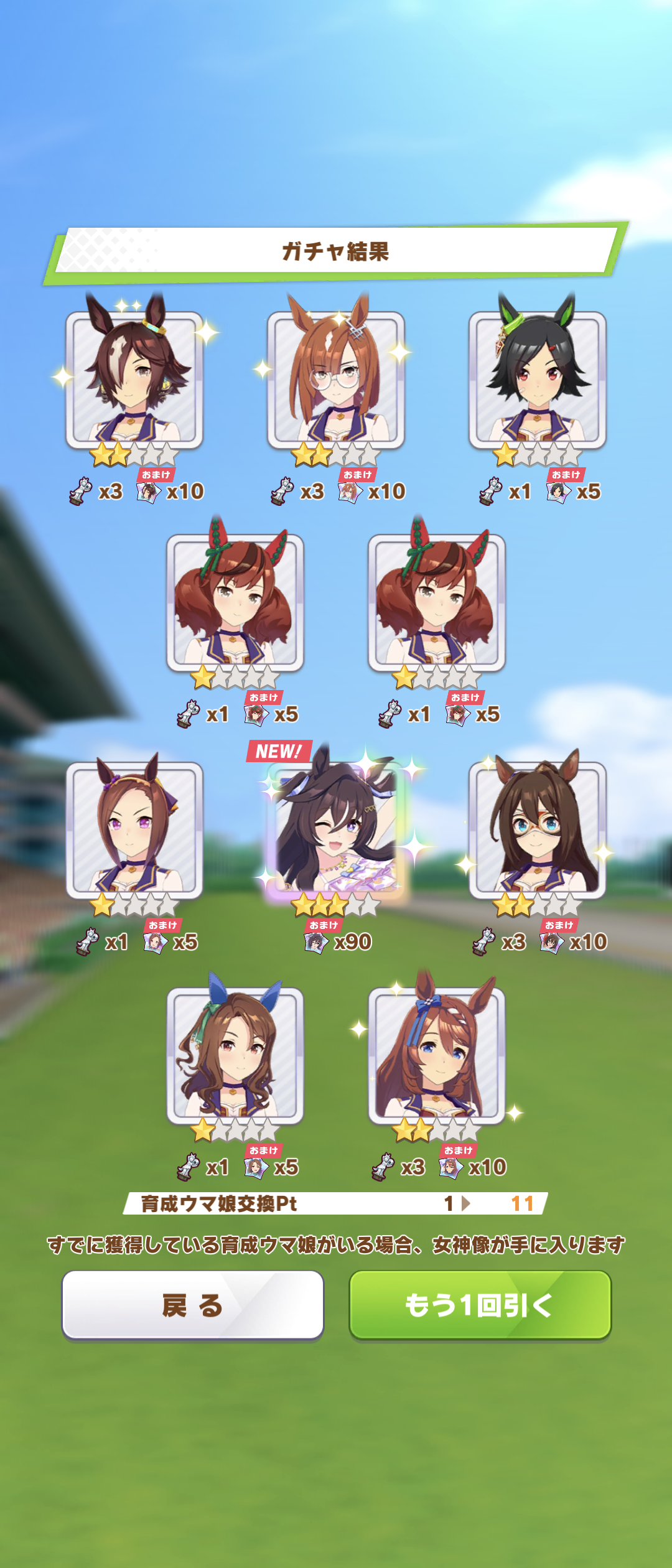 俺は無料単発とジュエル1500とおはガチャ後のチケット30枚