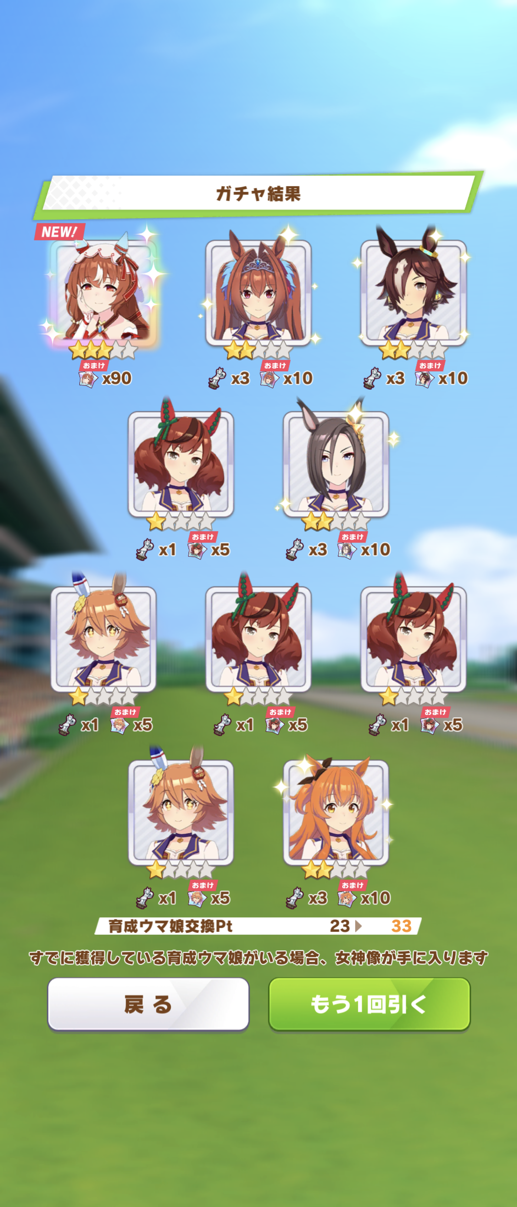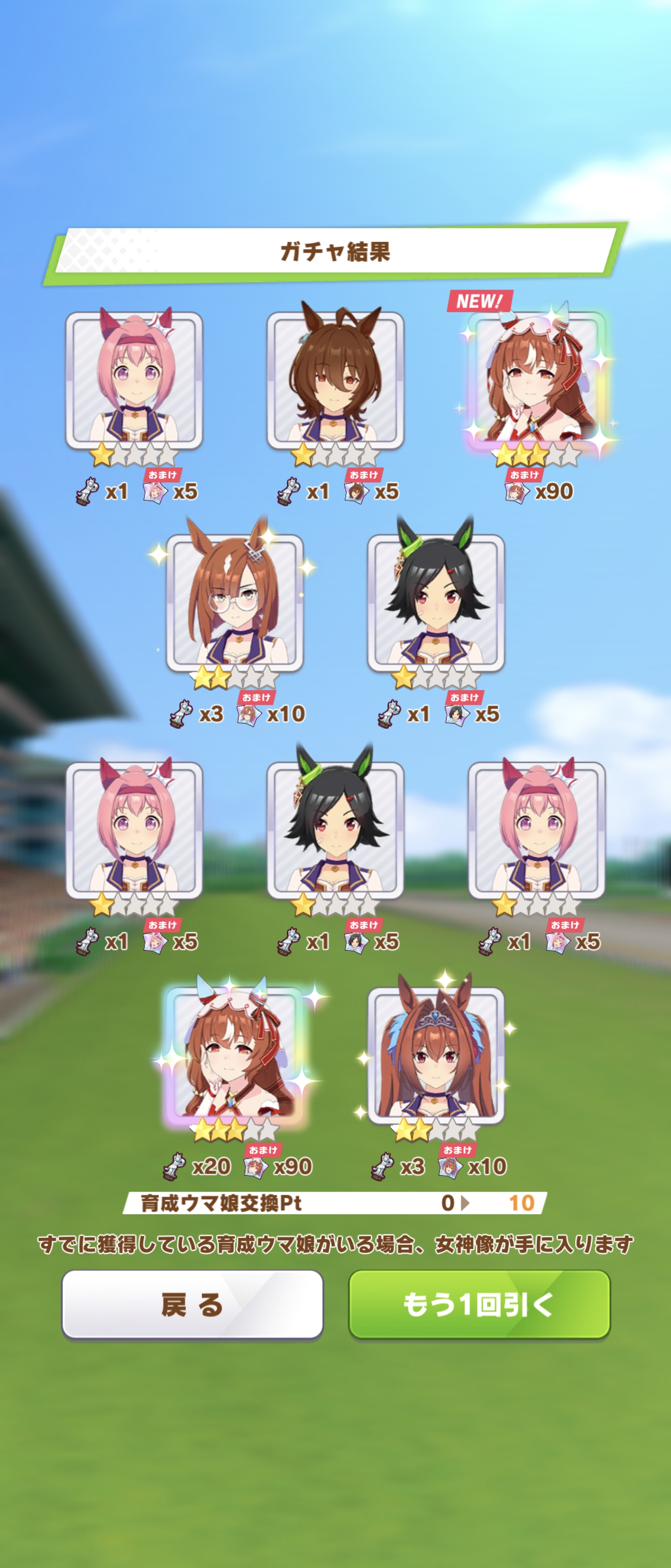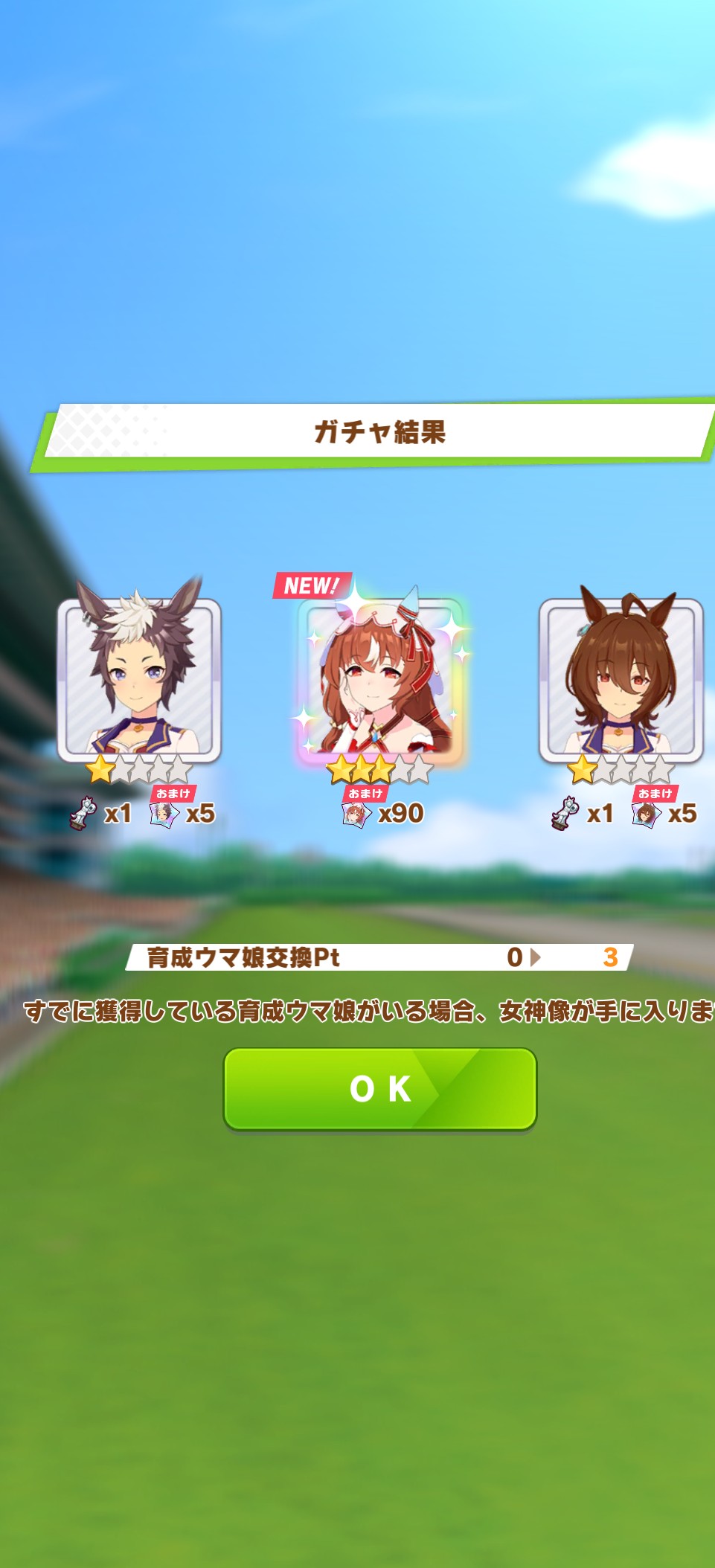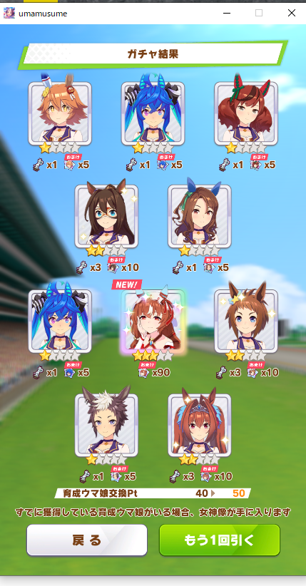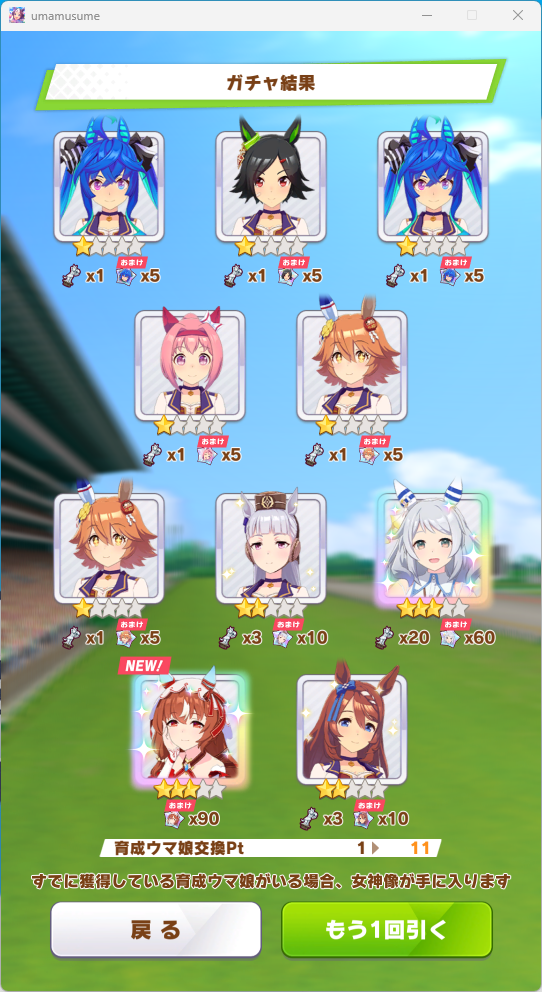 でも新しいウマ娘3人、既に引いた☆3が2人引けたからヨシ!