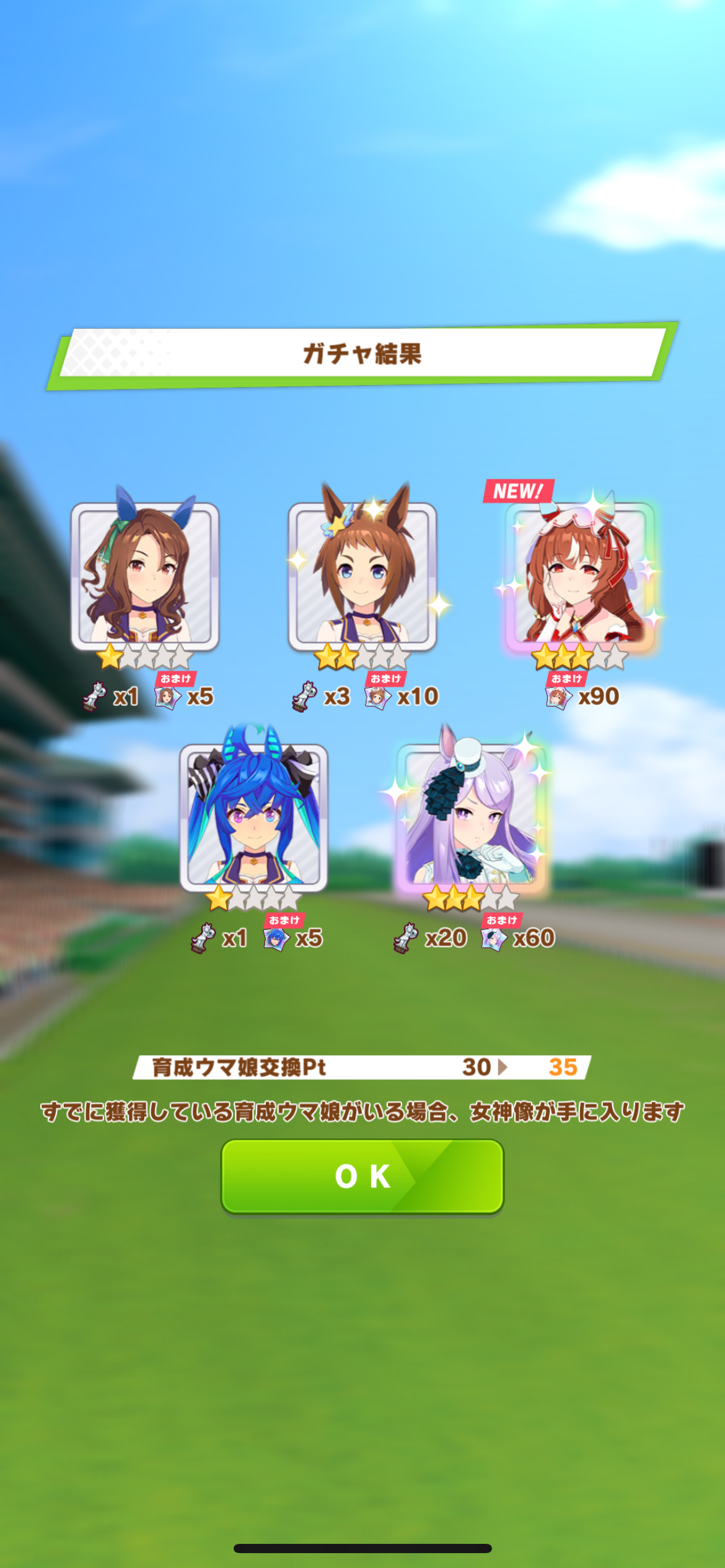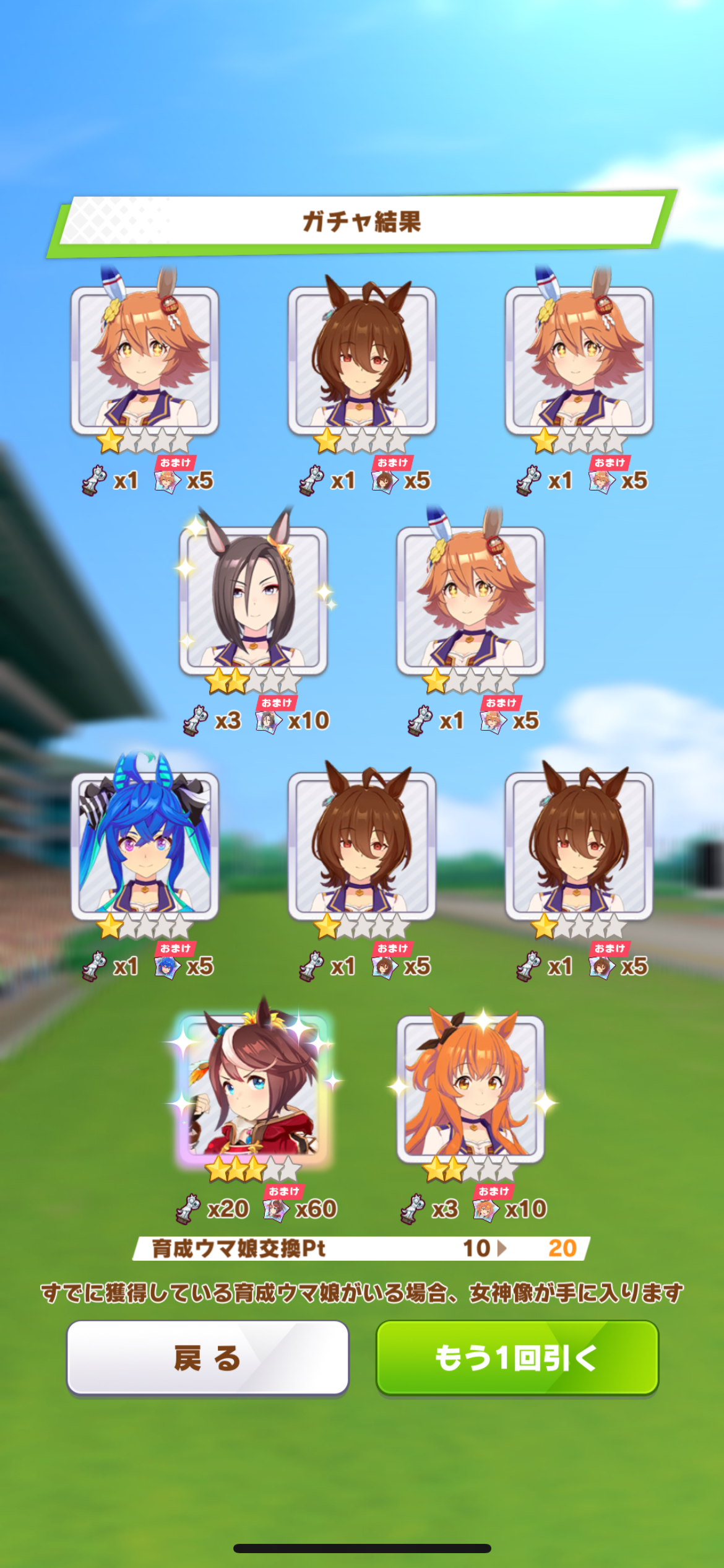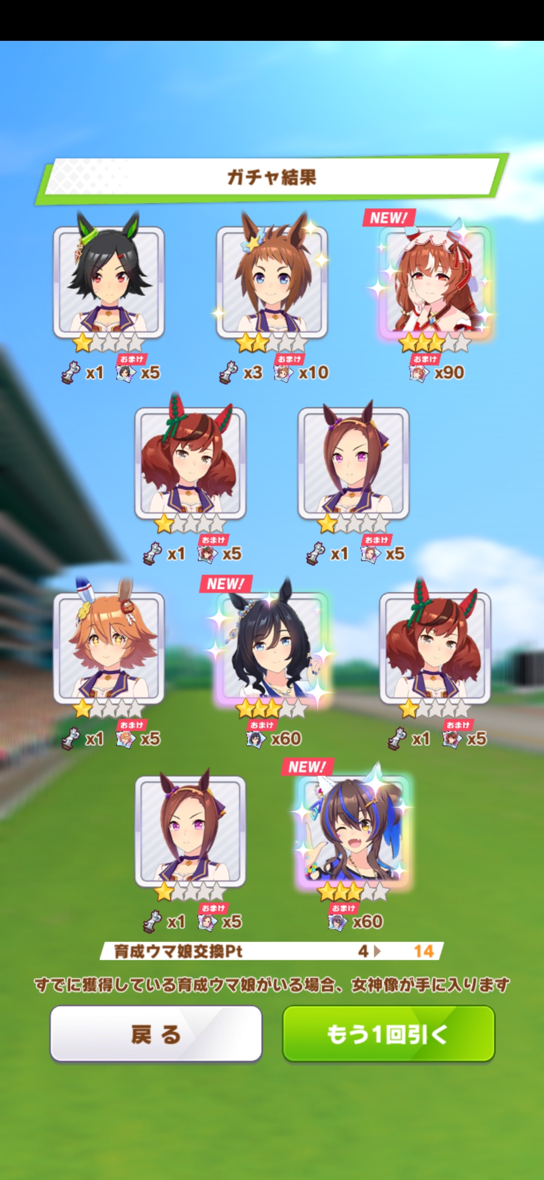 でも新しいウマ娘3人、既に引いた☆3が2人引けたからヨシ!