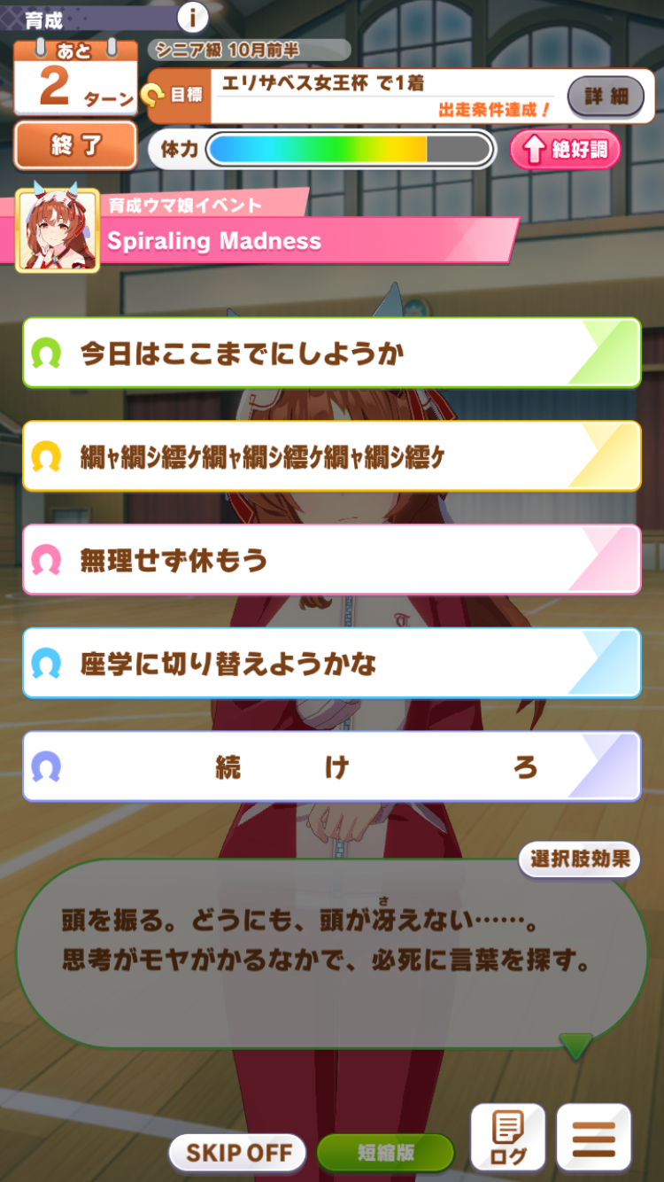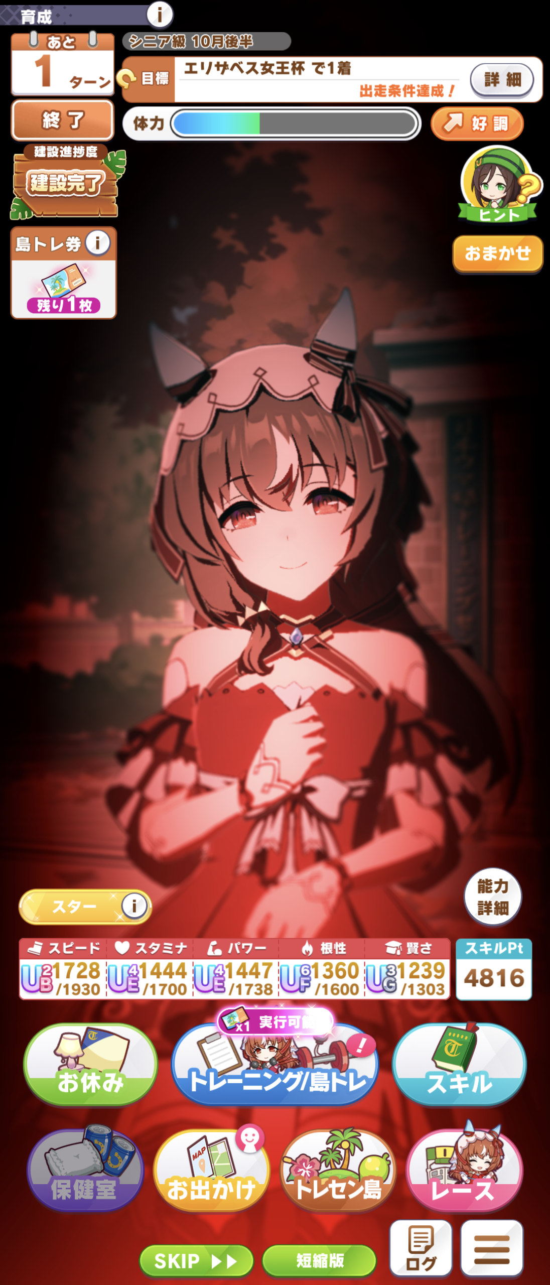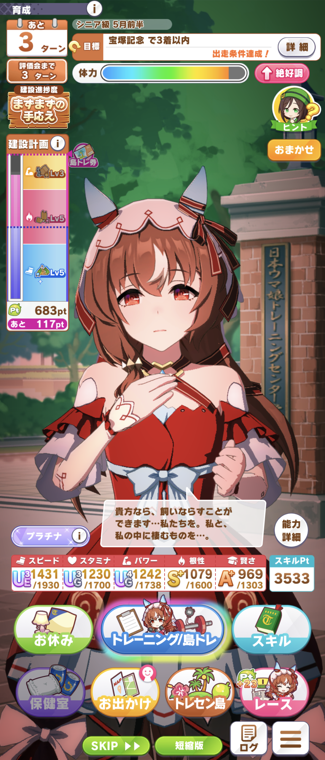 最終目標のシニアJCラモ姉さん、突破条件1着指定なのにステがだいぶ容赦ないのはそれだけ本気で2人を止めに来たってことなんだろうか