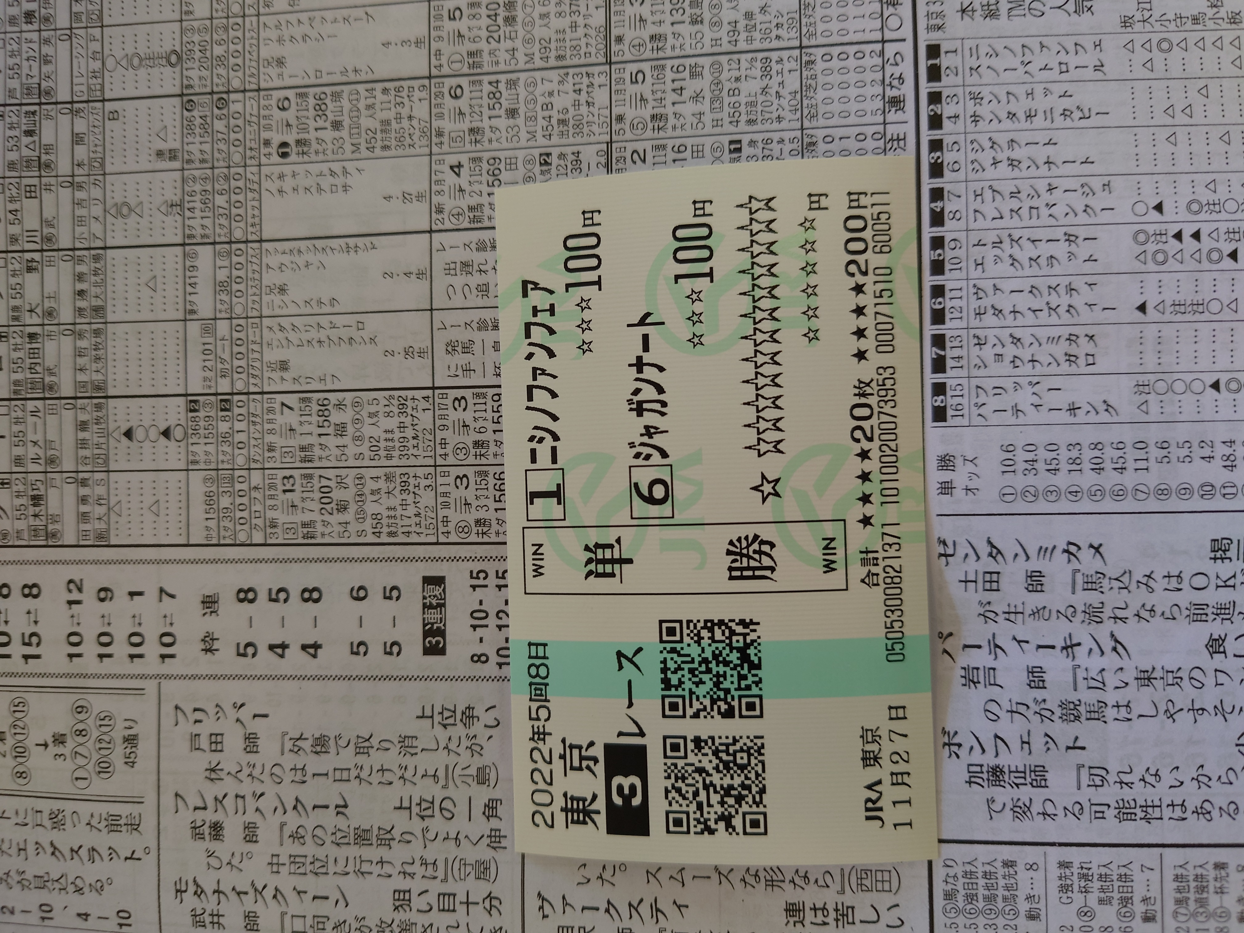 3連複もうちょい荒れてくれれば美味しかったんだけど40円トリガミしちゃった。