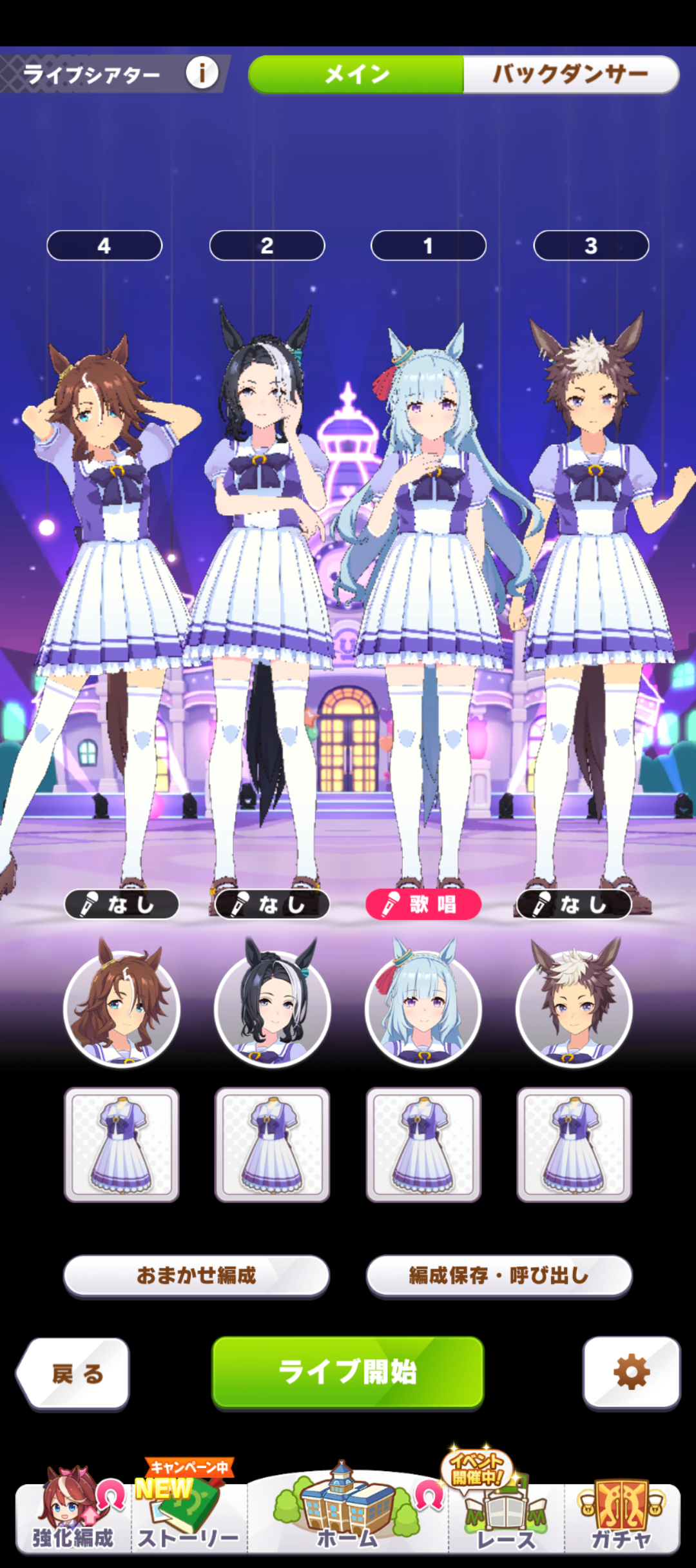 新キャラだから歌唱対応してないんです、で納得しようとしたらクロノの歌唱対応数だけ尋常じゃないし、勝負服もソロ曲もグッズも泣くほどもらえないボーノはライブだけやたら充実してるし