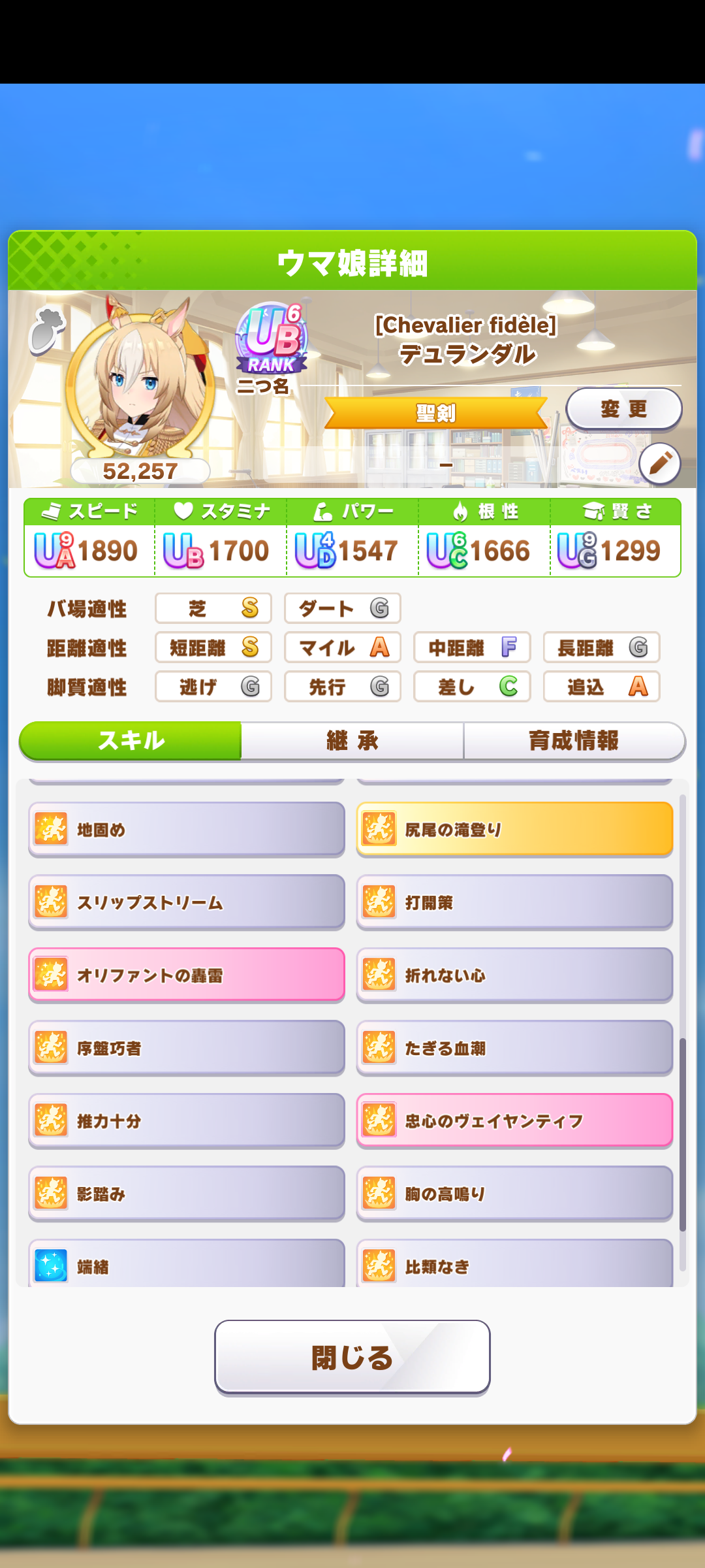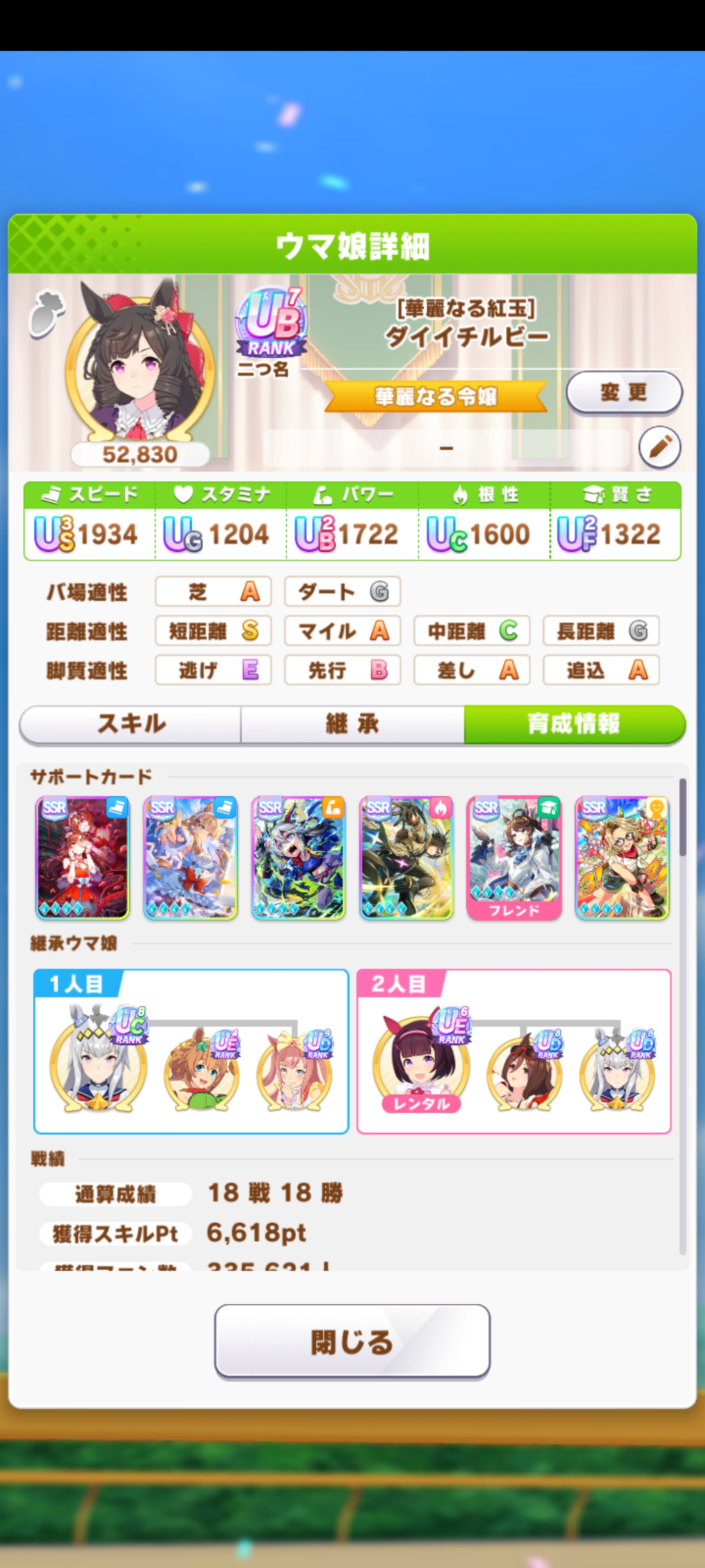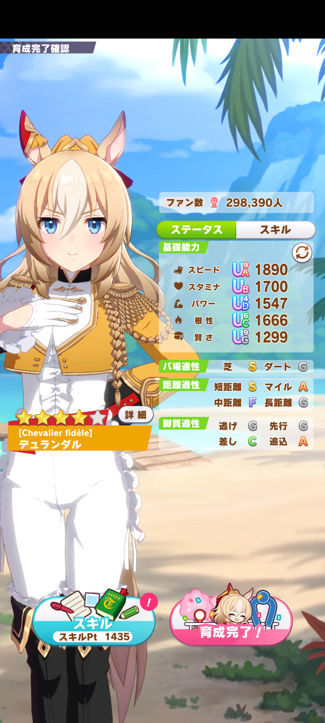 ステータスがスタート以外カンストするとスキル足りなかったり距離S付かないお約束