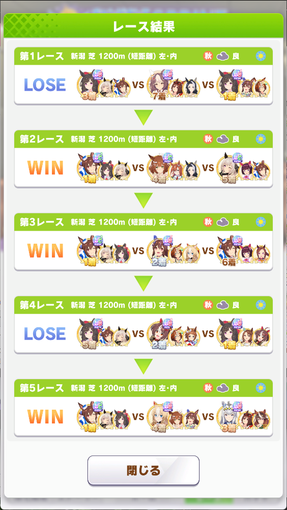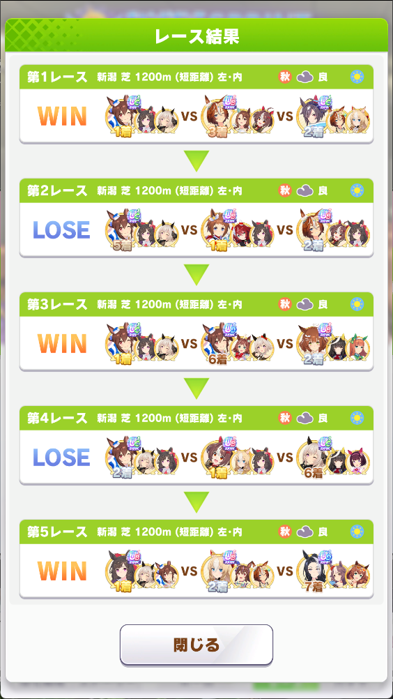 バレマーチャンで勝ちたいけど、ぶっちゃけ短距離って逃げが弱いんよな(前回の短距離LOHで見方のフラワーやヒシアケボノにボコられた思い出