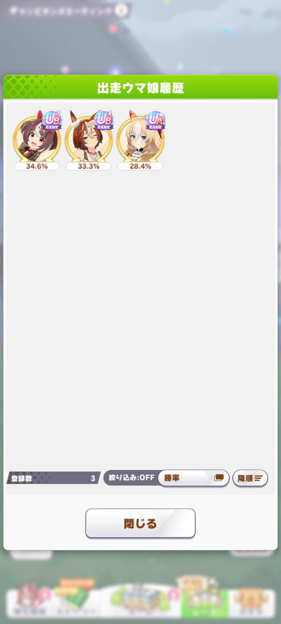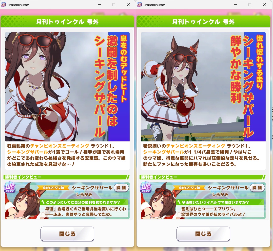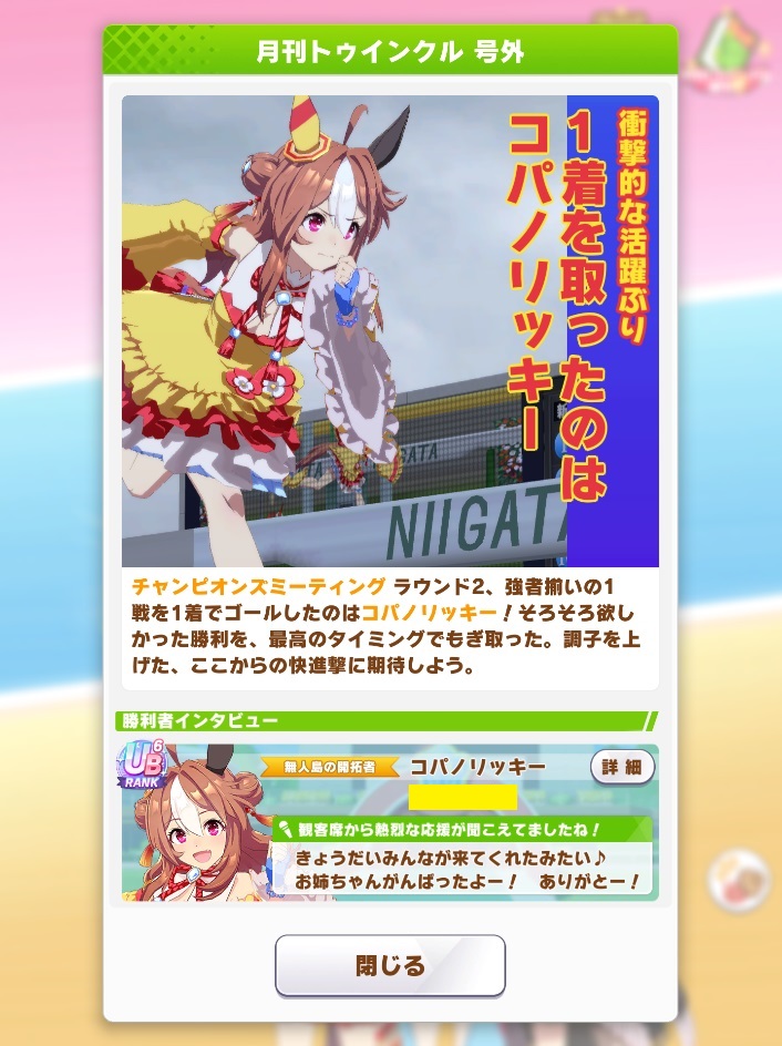 久しぶりに勝てた…チャンミ4連続クビハナ差で敗戦からの久しぶりのチャンミ優勝で身寸米青しそう…