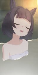 トレーナーのマッサージを受けてご満悦のマックイーン