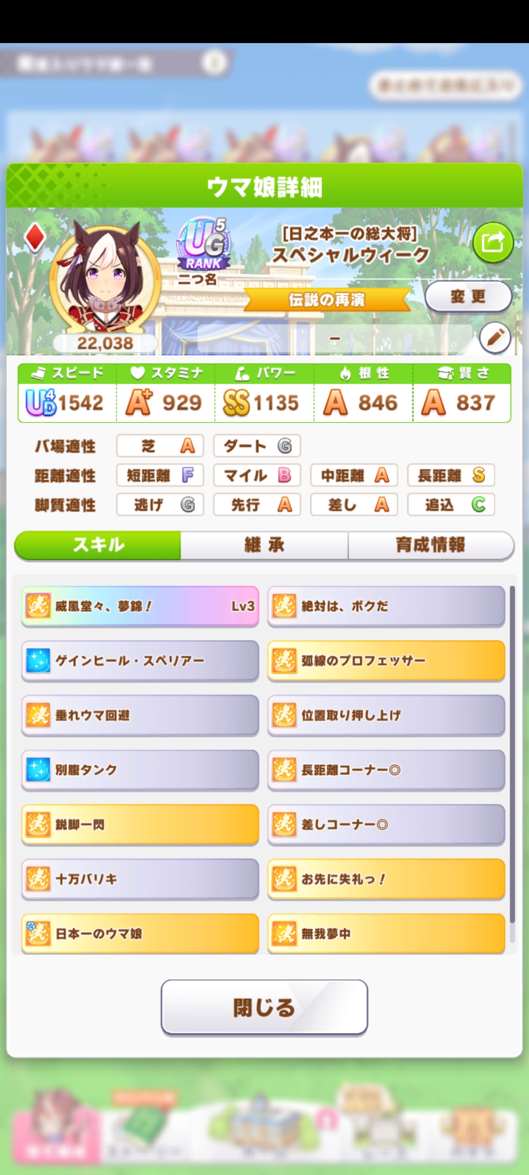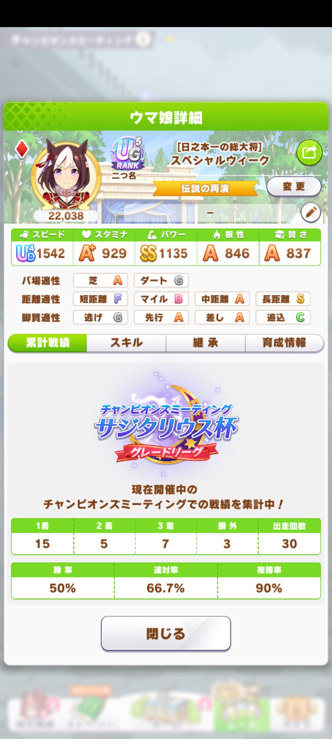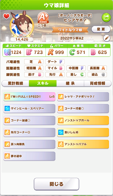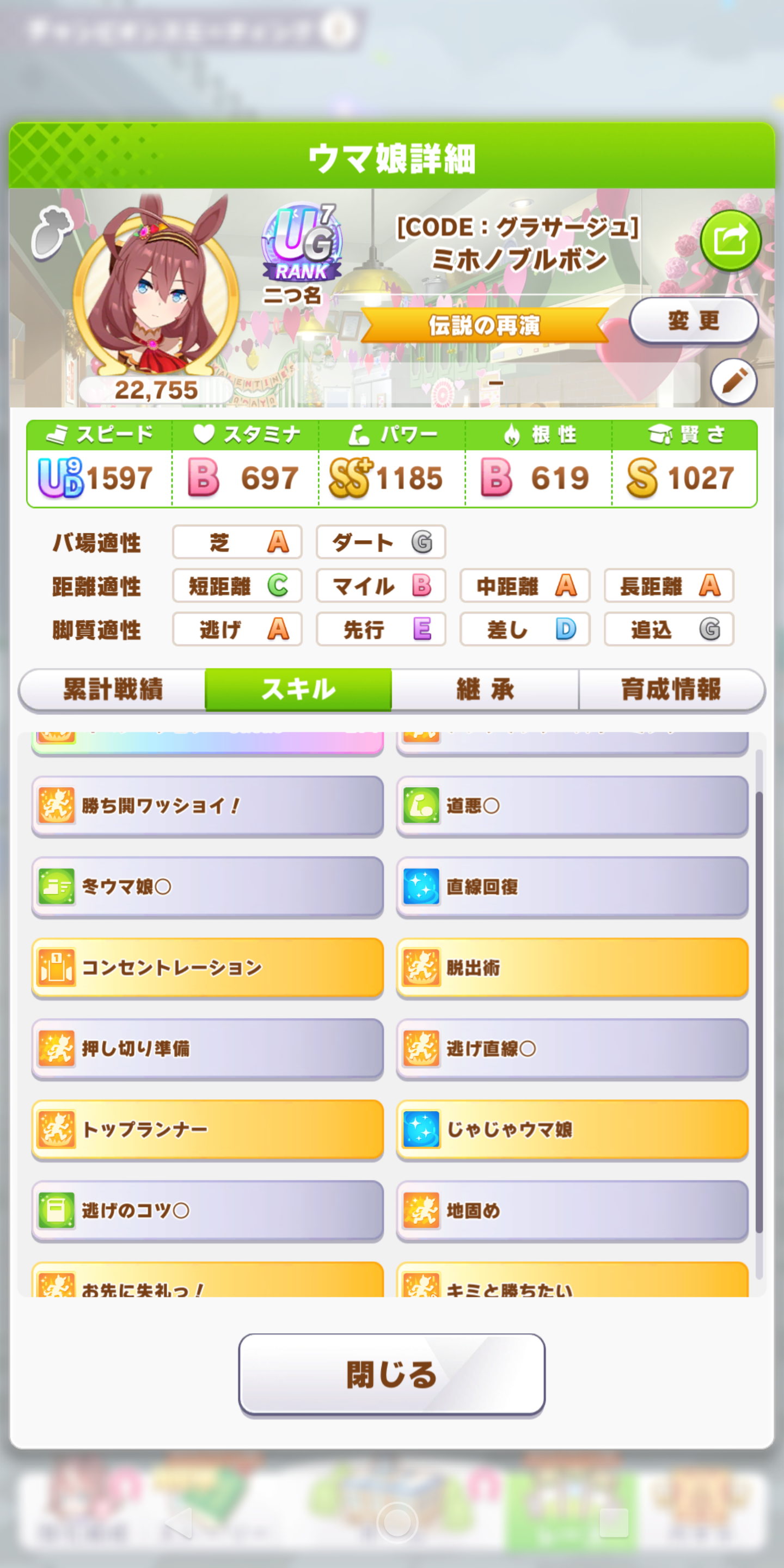 せっかくだから、これからも暇な時に汎用長距離用のオープンボノ育成はしておこうかな。