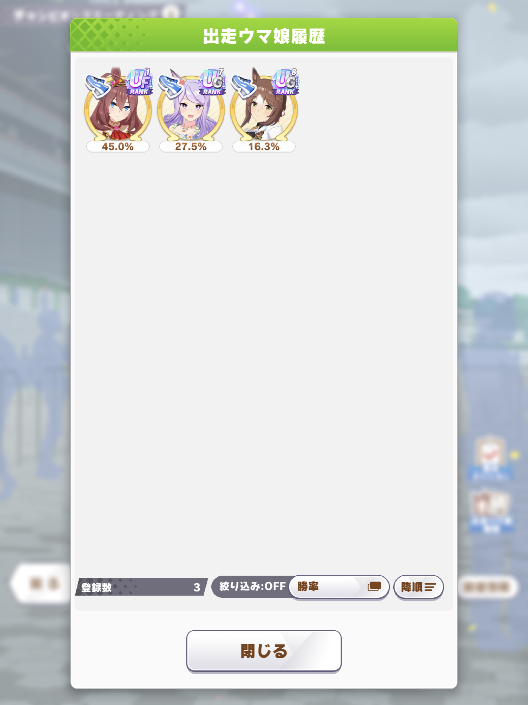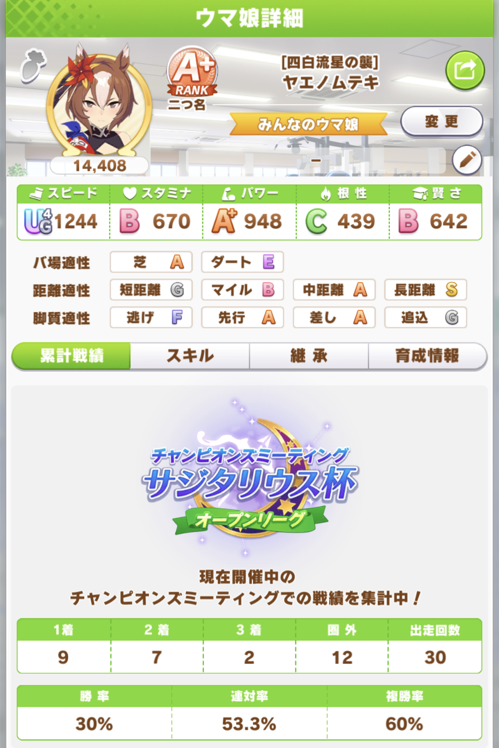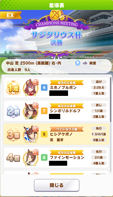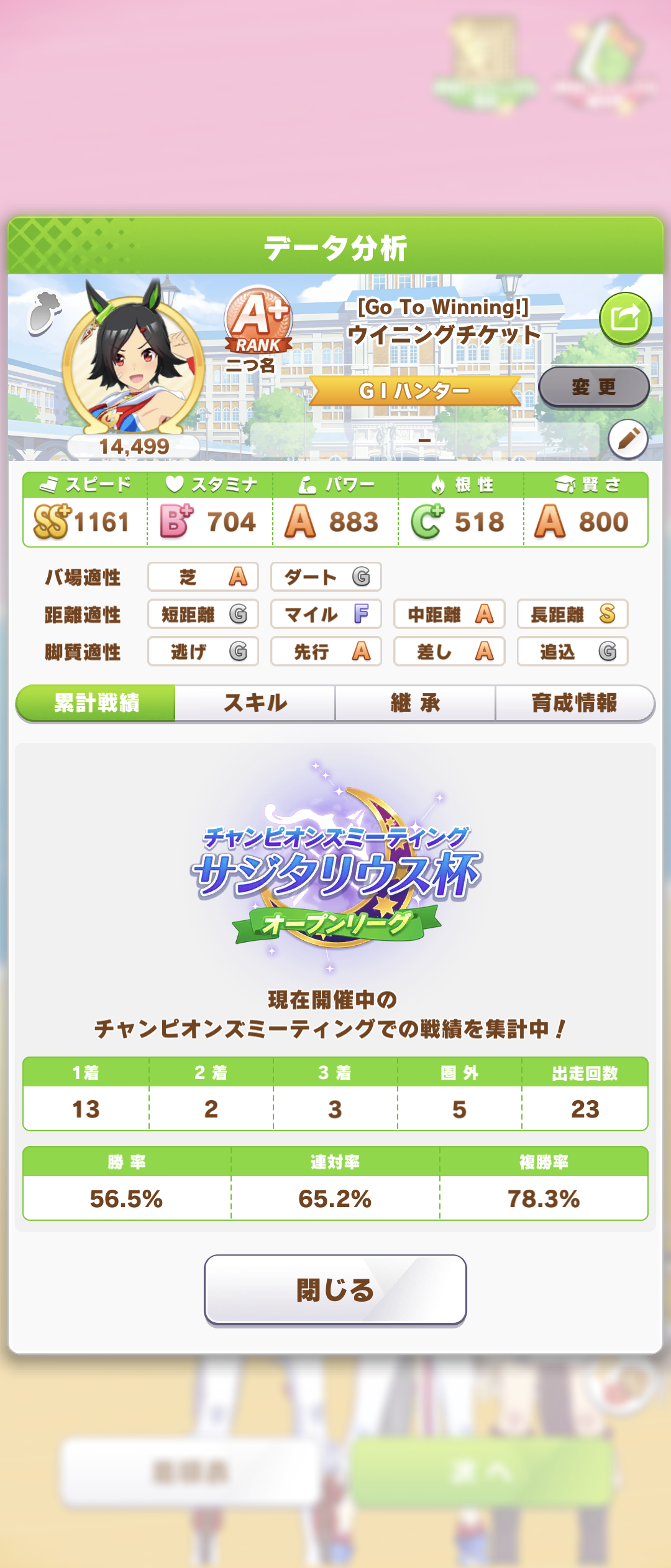 せっかくだから、これからも暇な時に汎用長距離用のオープンボノ育成はしておこうかな。