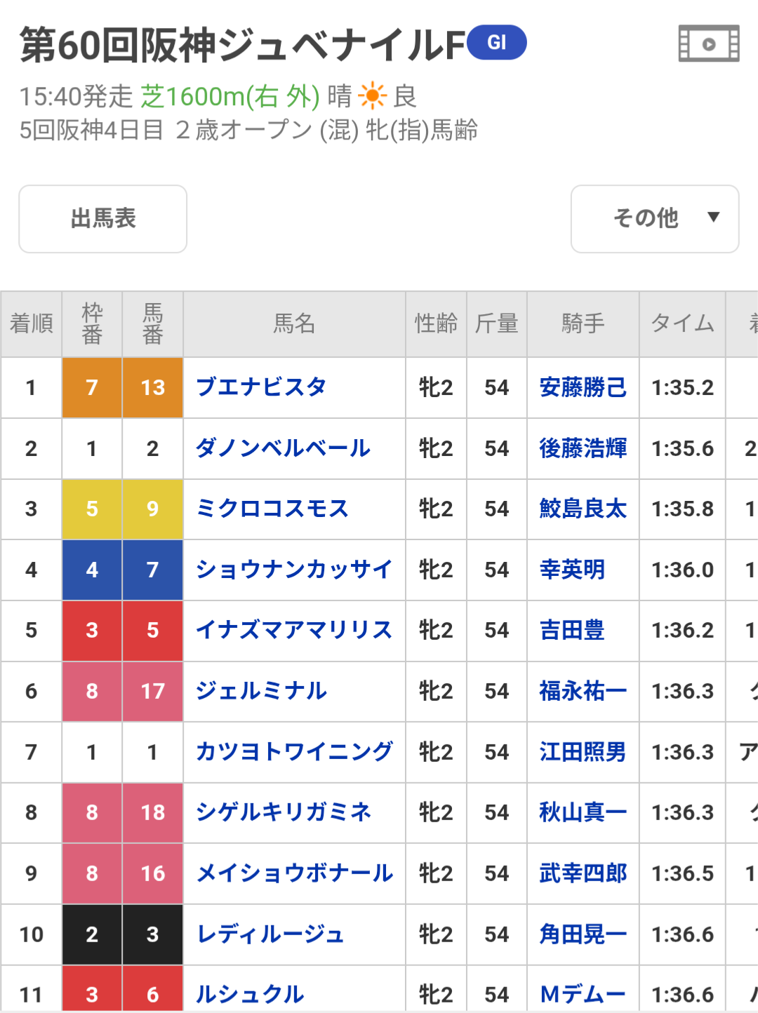 まあ阪神ジュベナイルフィリーズならブエナビスタよな