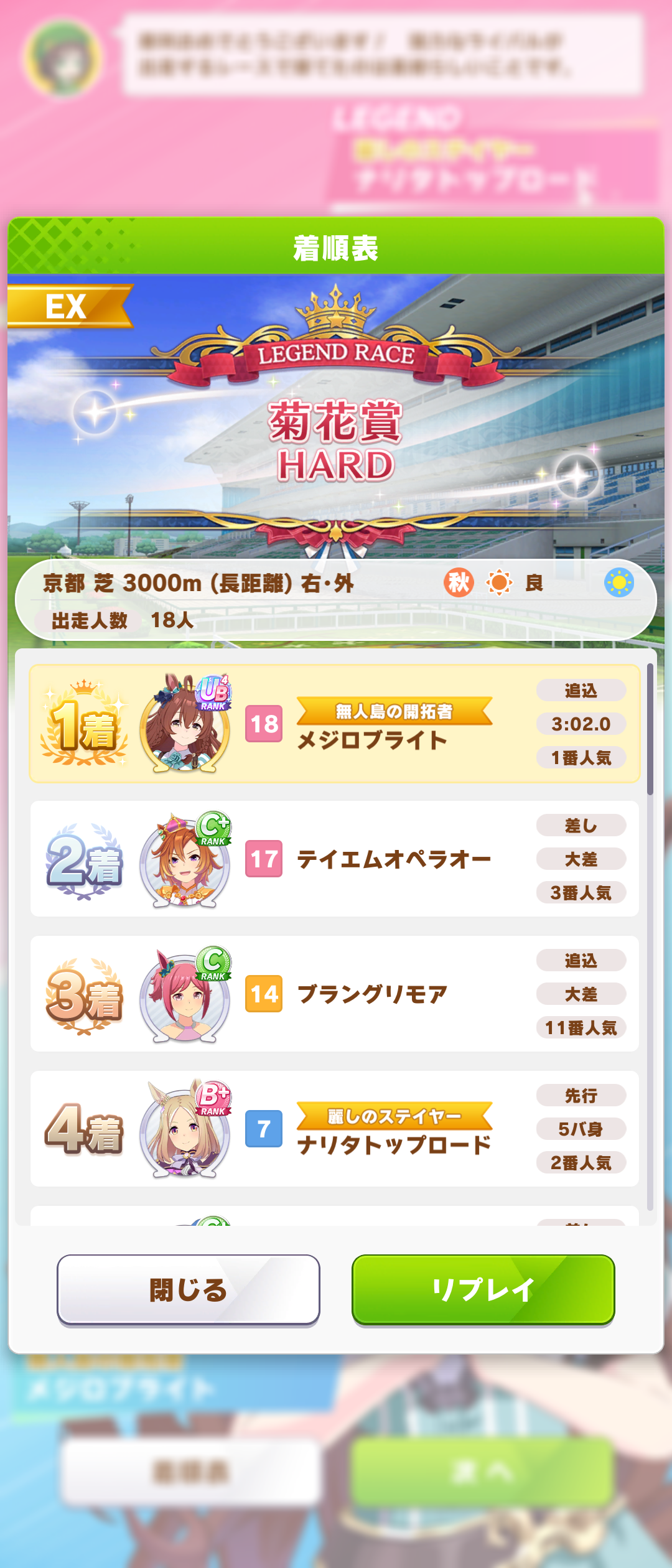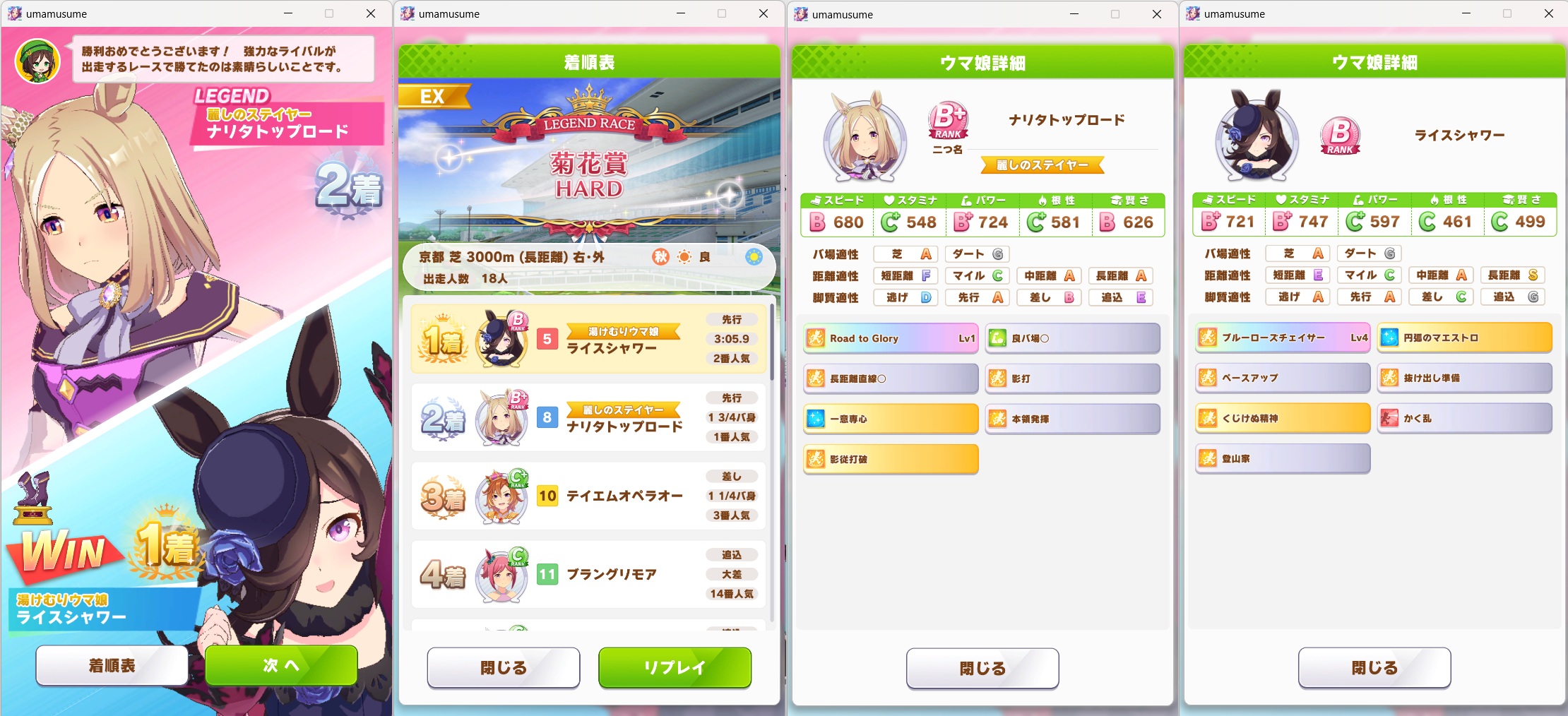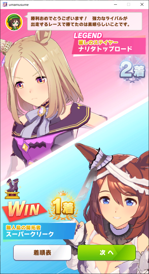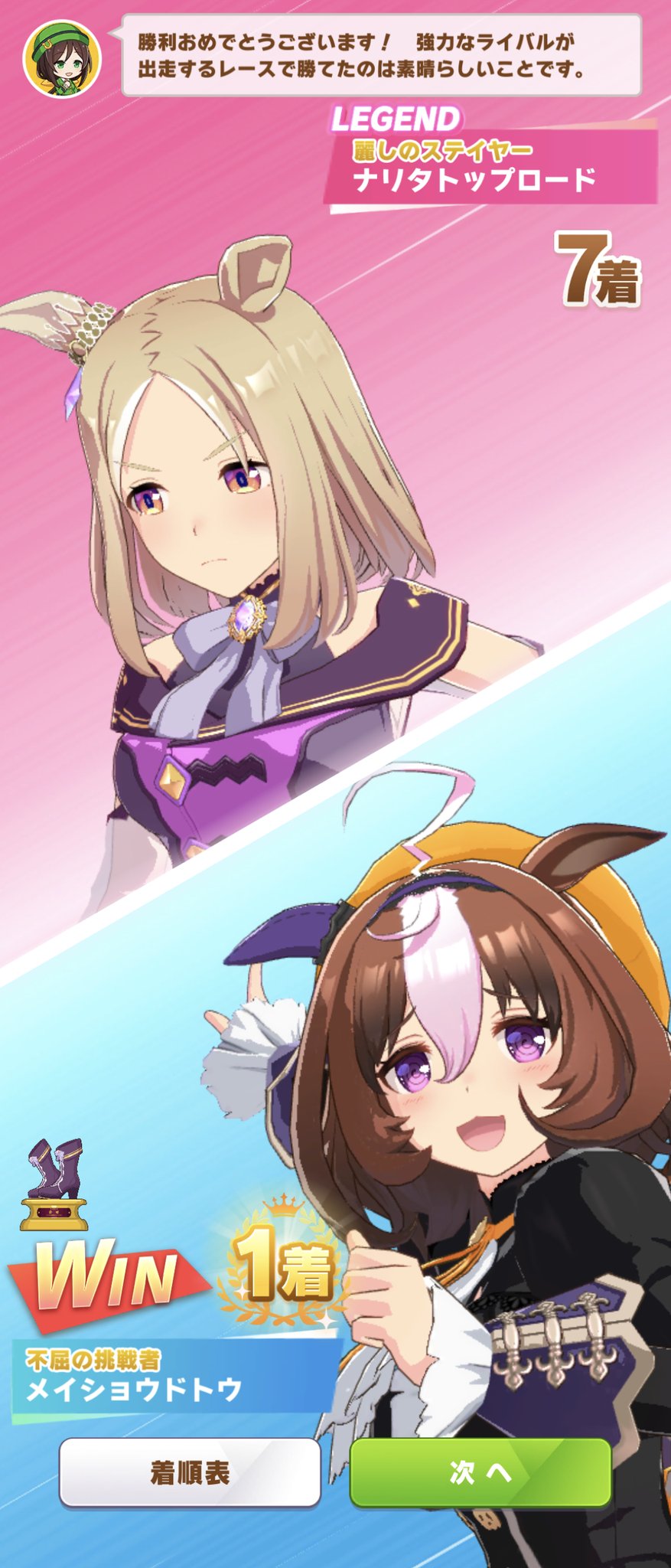とはいえオペラオーに負けることの方が多いんじゃないかってくらいオペラオーのが先着しまくってるのはどうかと思うが