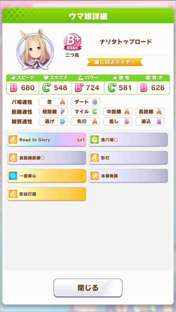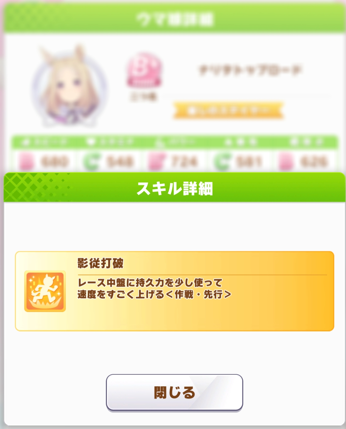 出遅れて一意専心が出ないと、ただでさえスタミナ最も使う先行で回復なしのところに影従打破で追い打ちがかかり、そこへアヤベさんの先行けん制でトドメ刺されるって感じだろうか?