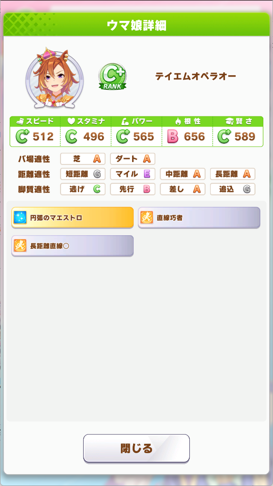 スクショし忘れたけどあのオペラオー円弧のマエストロか何か持ってなかったっけ?