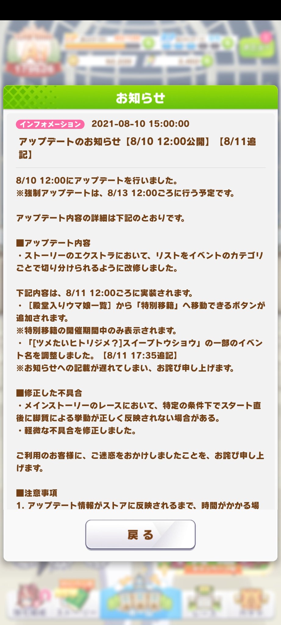 ファインの設定変更より触れづらい変更が加えられたウマ娘がいた