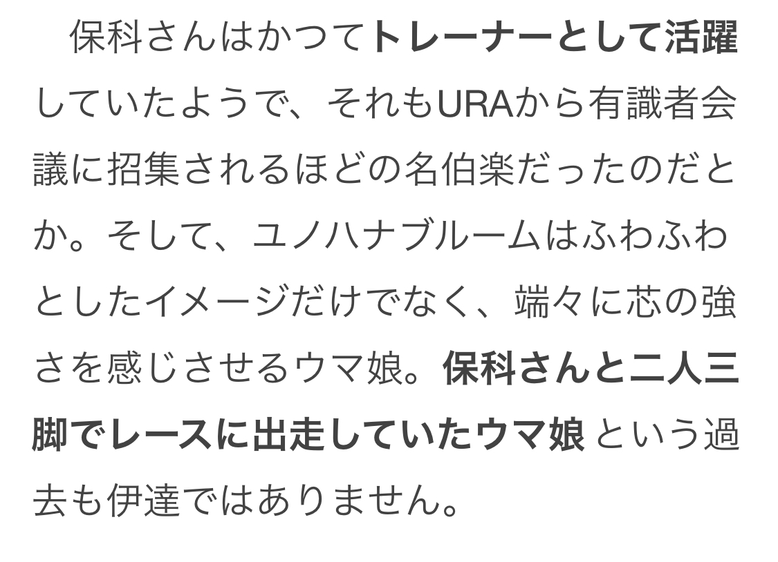 保科さん元トレーナーだしユノちゃんが担当ウマ娘だったのね