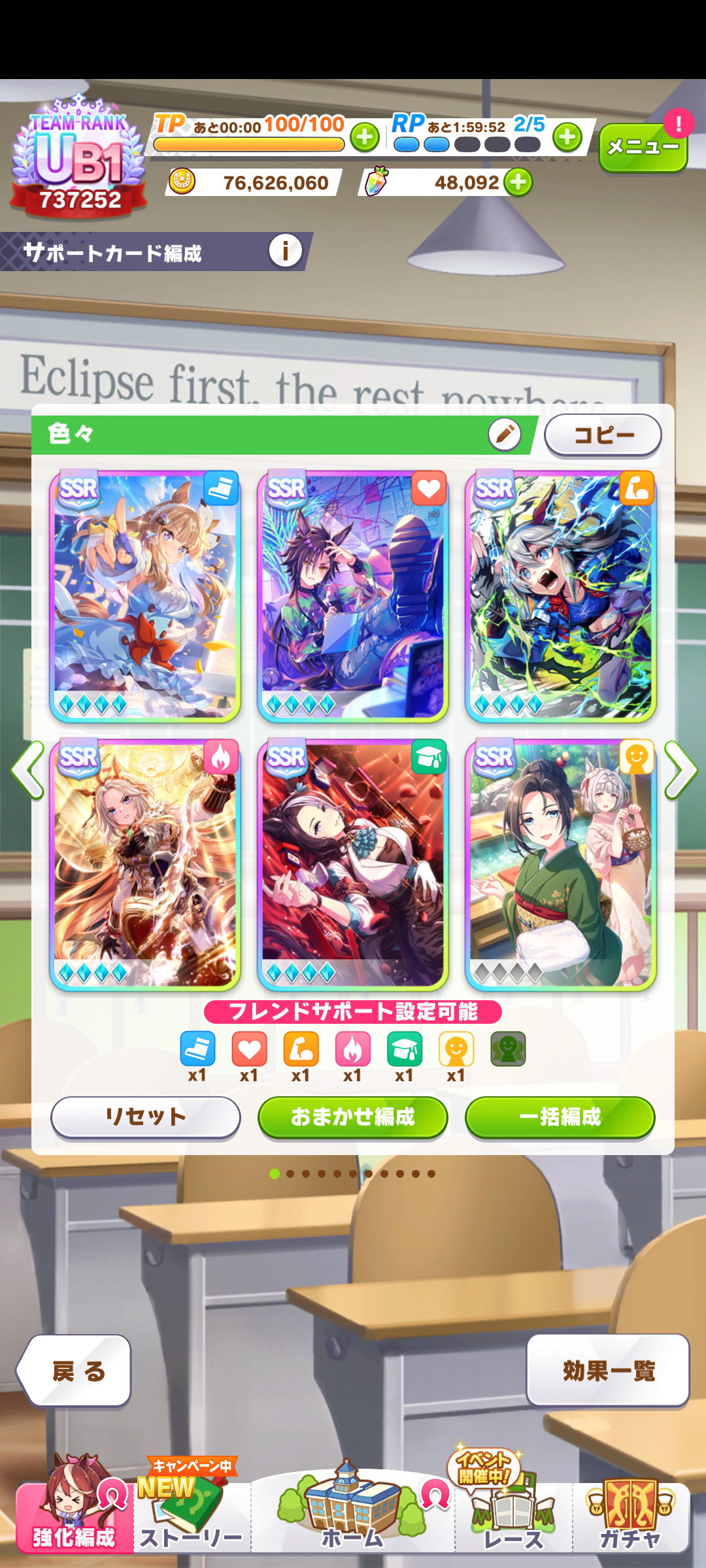 賢さは多分次のガチャで温泉アキュートとブルボン賢さのサポカ(前脚質用金2)とか来そうな予感する