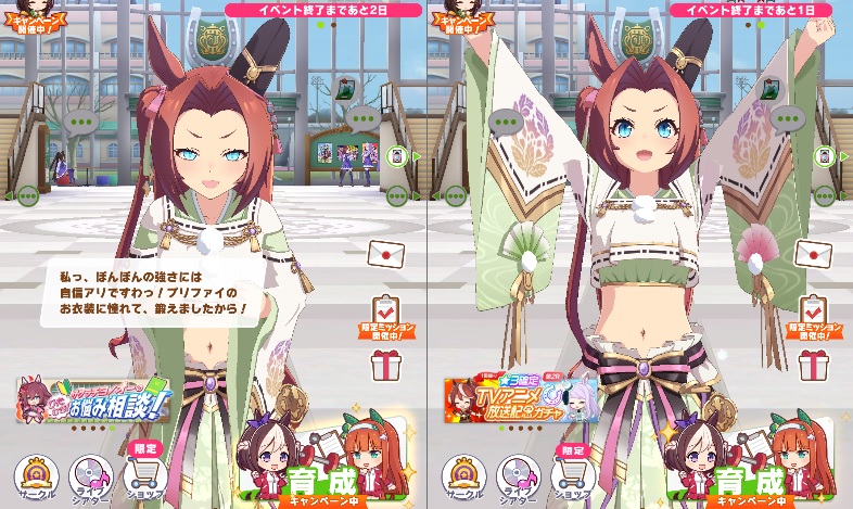 ※画像右は冬セリフの時の動作なのであとひと月くらいしたら見れます