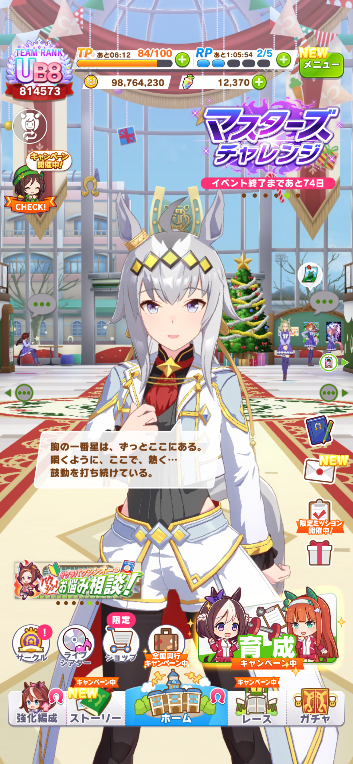 今日からホーム画面のエントランスクリスマス仕様になったのか