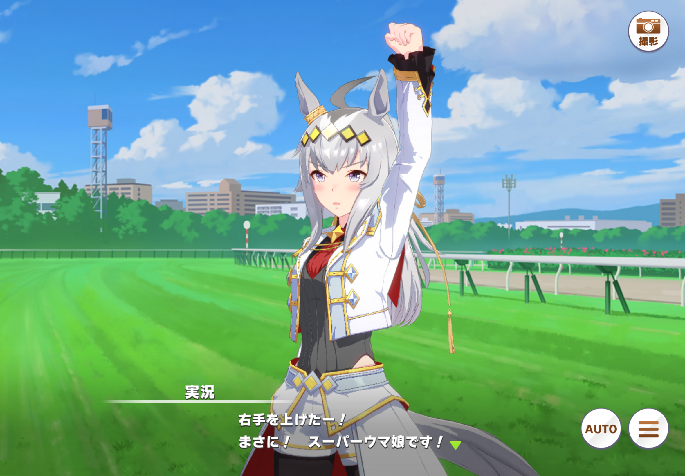 右手(左手)を上げるオグリ