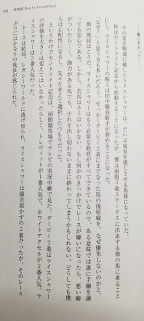 砂糖やミルクを入れ過ぎない甘さと暖かさを控えめにしたようなオリジナルブレンドのコーヒーのように過ごした歳月。この歳月が俺を創った、そう言っても過言ではないくらいの感謝をナリタタイシンに。