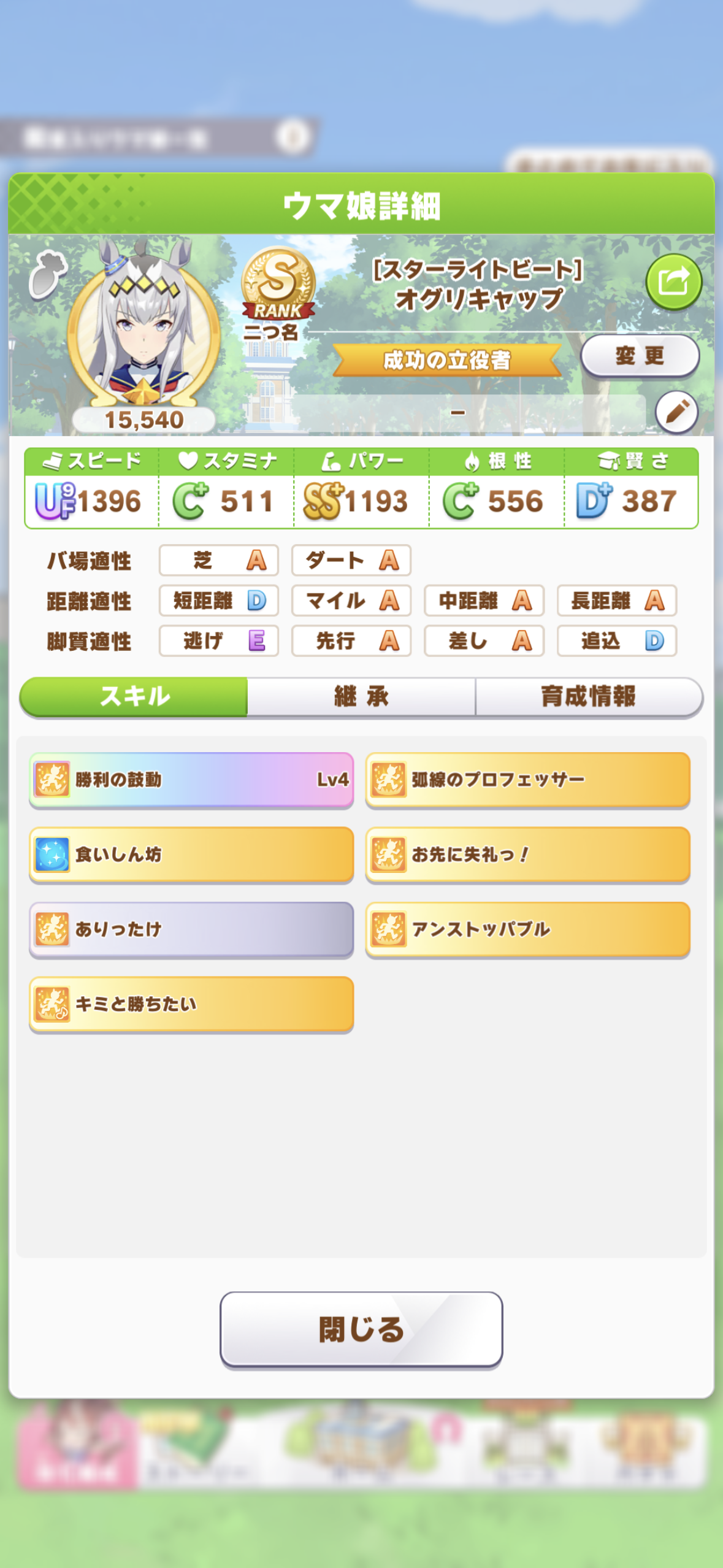 因子もサポカも揃ってない頃にめちゃくちゃ上振れしてくれた 今でも継承では時々お世話になってる