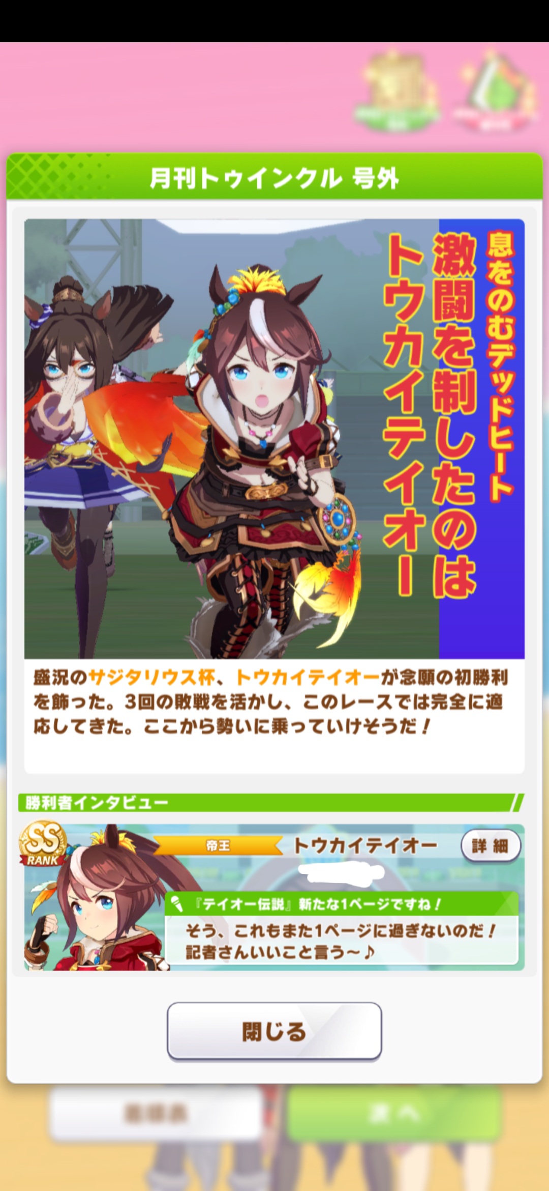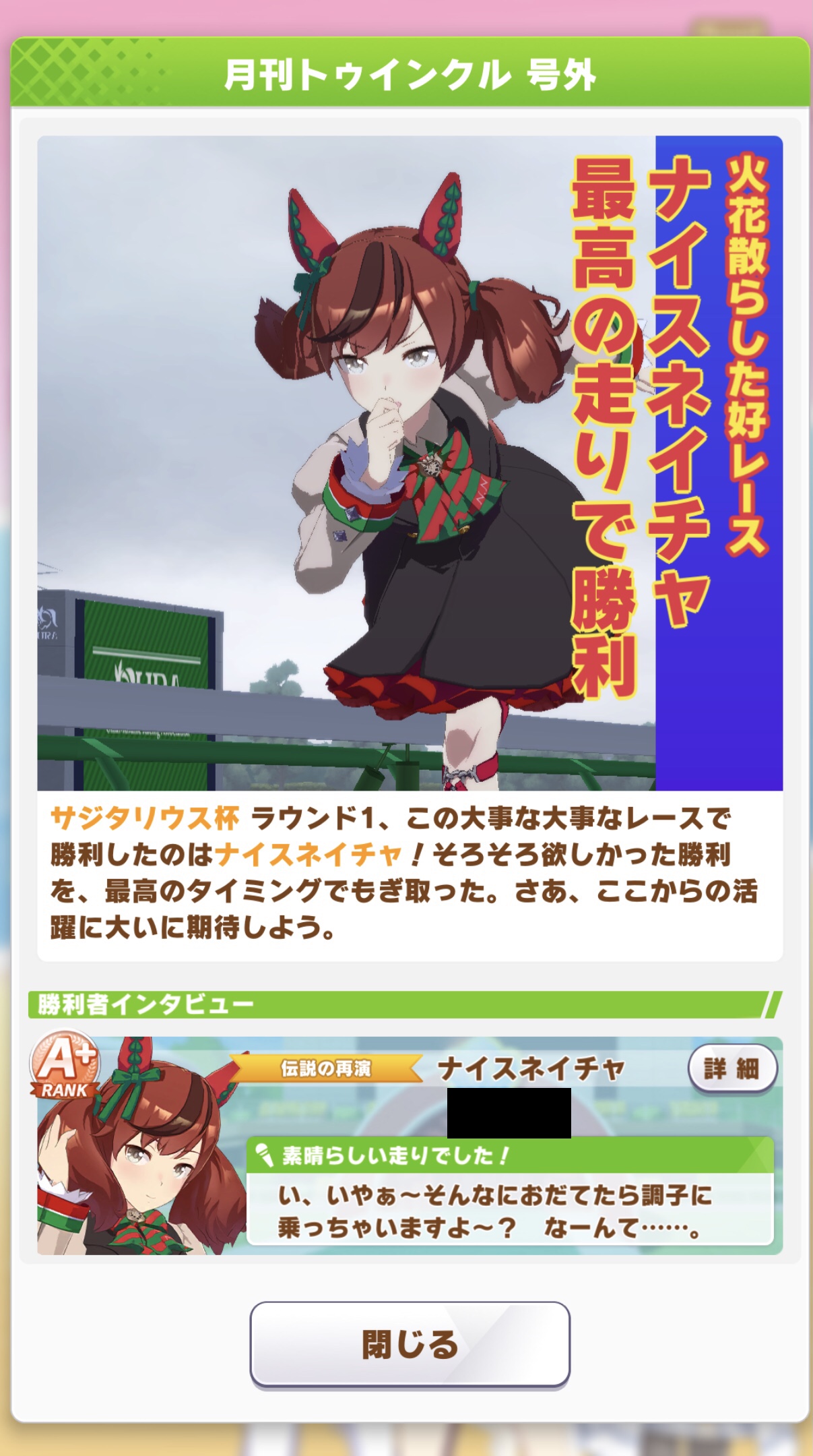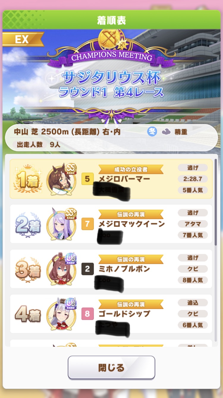 このチャンミのためにメイチで仕上げたカイチョーがやっと花開いたわ