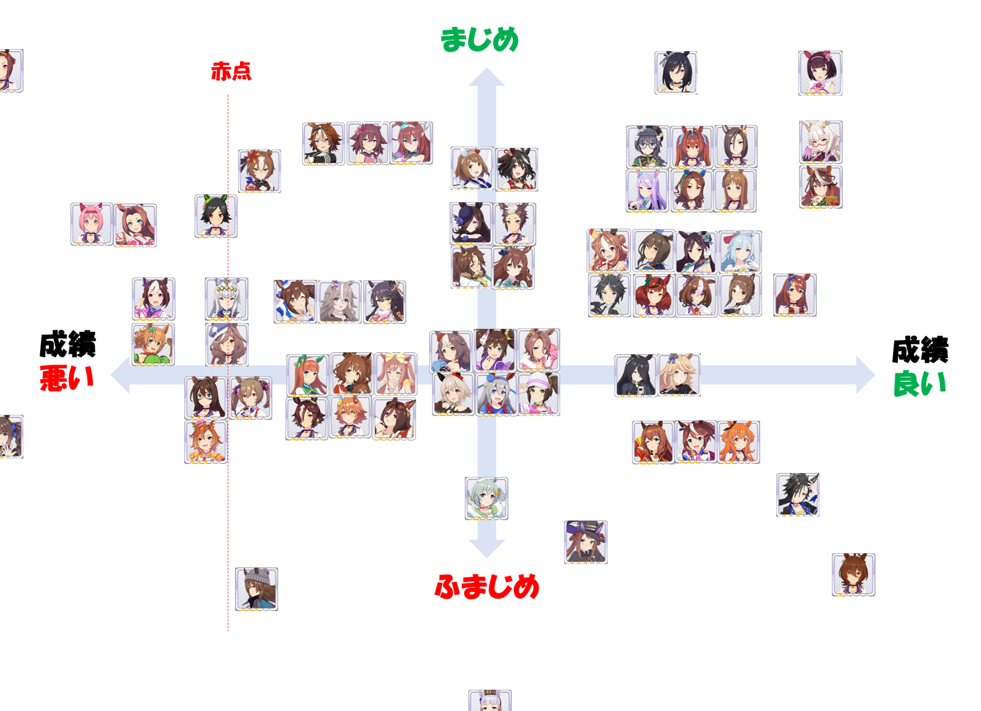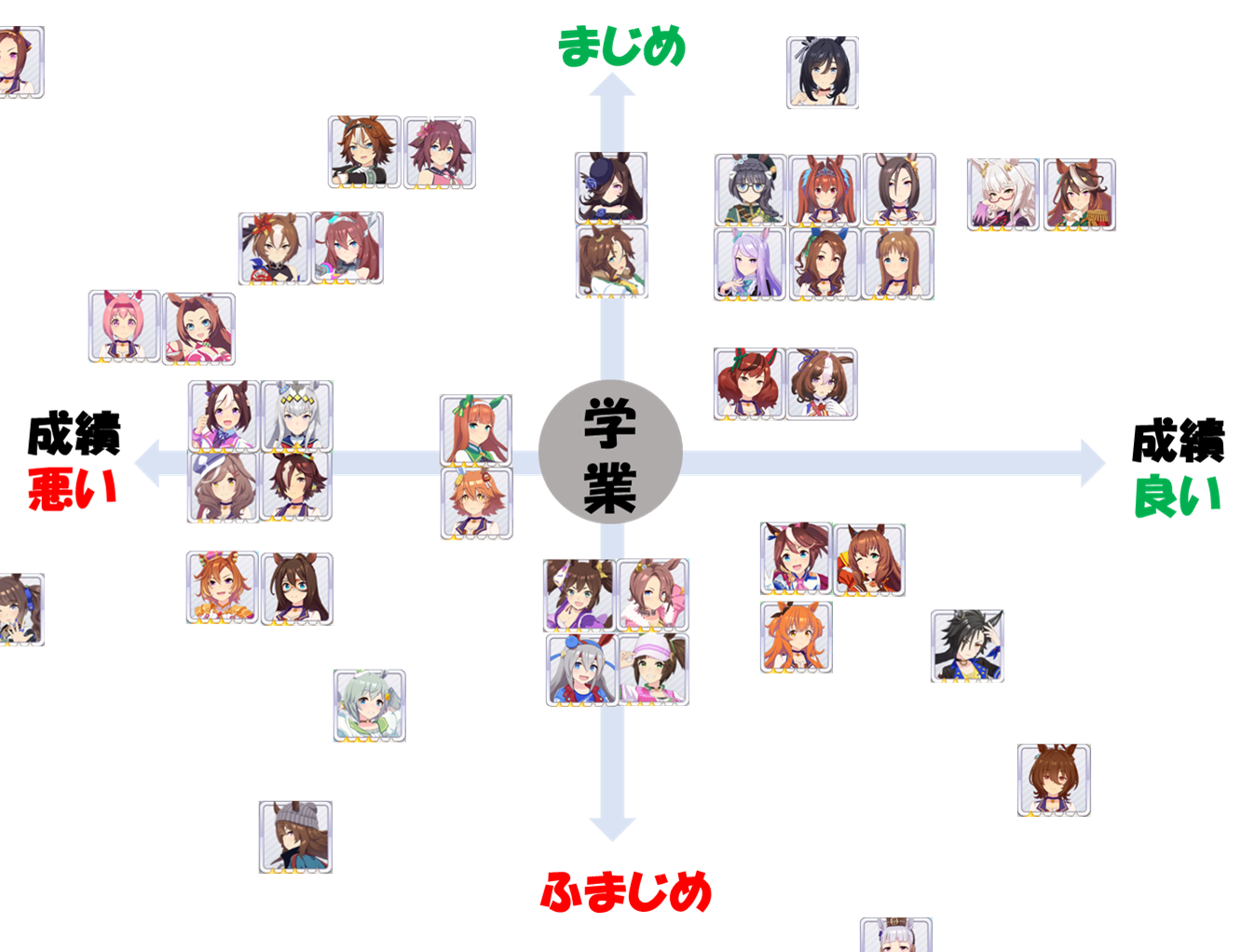 ほとんどは勝手にイメージだけで配置してるから実はファル子が勉強できるとかだったら申し訳ない