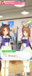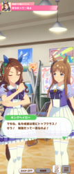 通常チケゾーの勝負服イベで小テスト受けるのに勝負服で挑むのか制服に着替えさせてから挑むかというイベントがある。勝負服で満点、制服でギリギリ赤点回避といった感じだった。