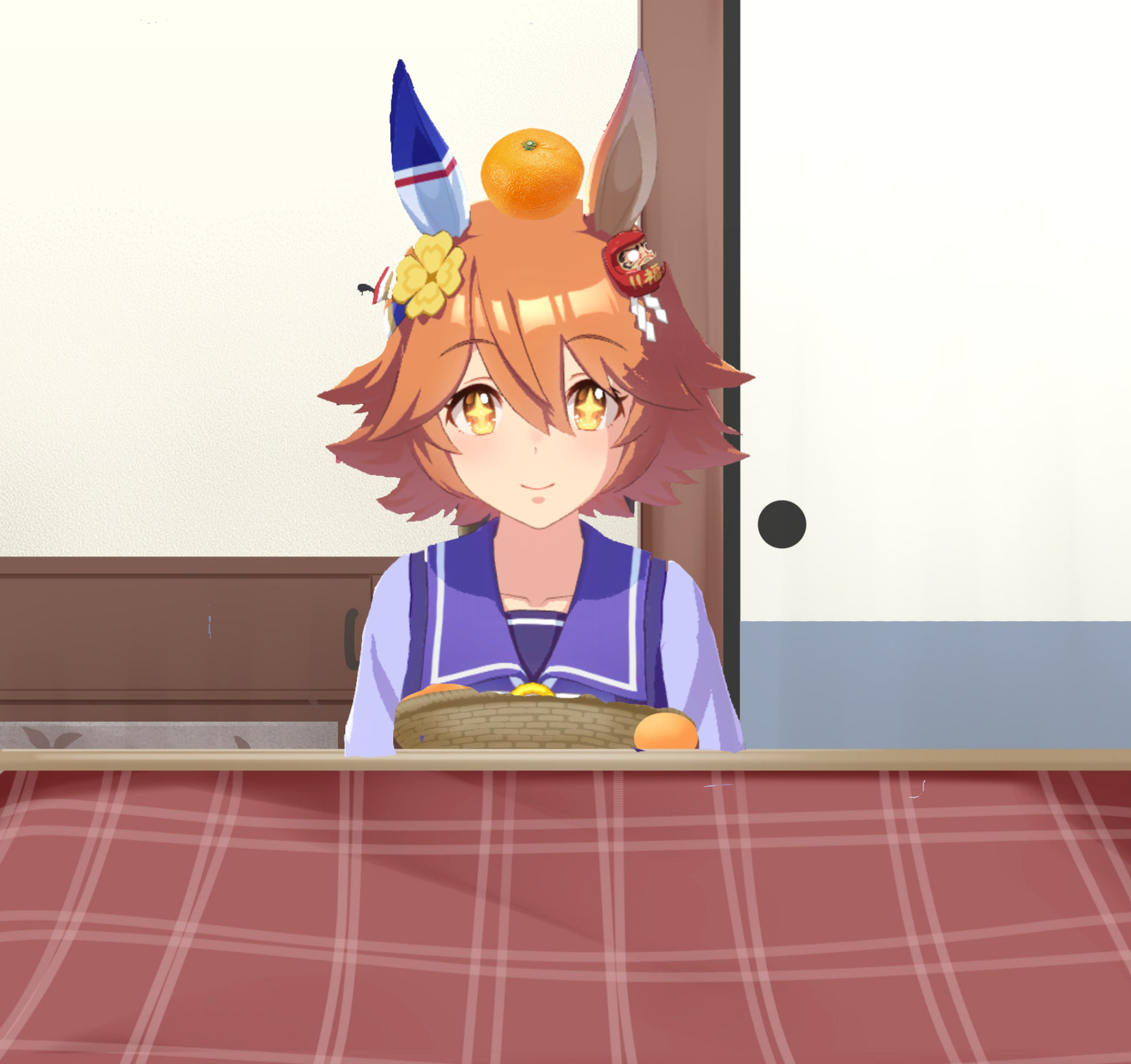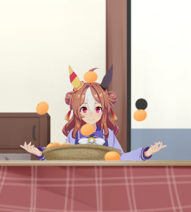 🐭「タキオンの季節外れだが瑞々しい夏ミカンを2つともいただくよ!」