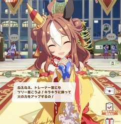 ハーッハッハッハッハッ!みんなもトレーナーくんのお部屋で朝まで公演会をするのかい?それならそうと共演を持ちかけてくれたらよかったのにね!