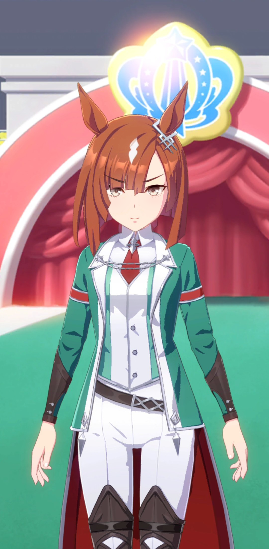 まずは緑を基調とした勝負服に合わせた緑ですわ