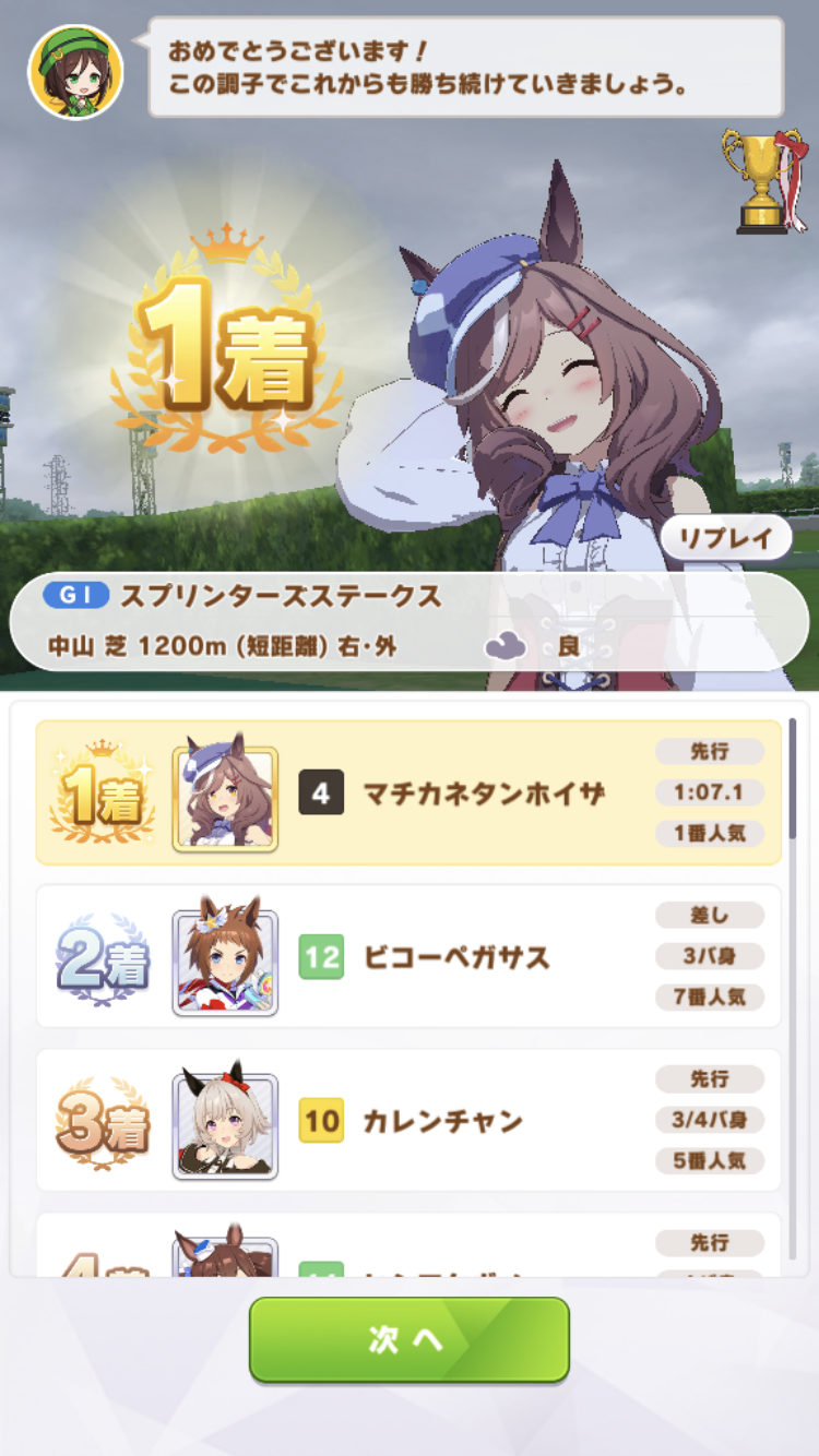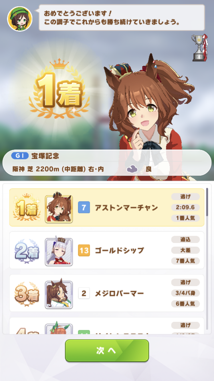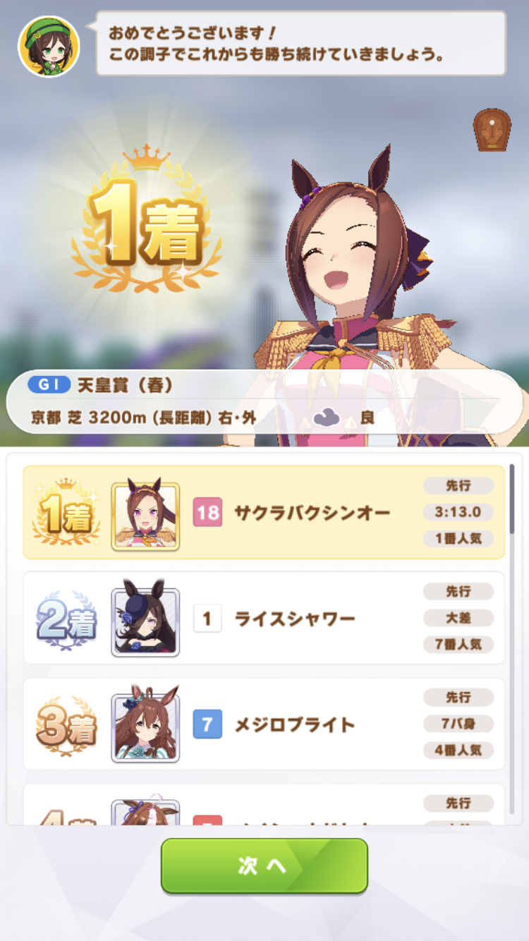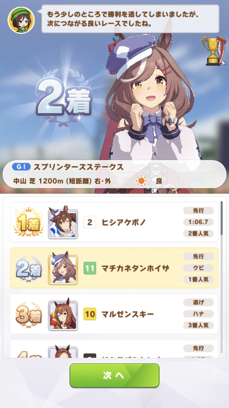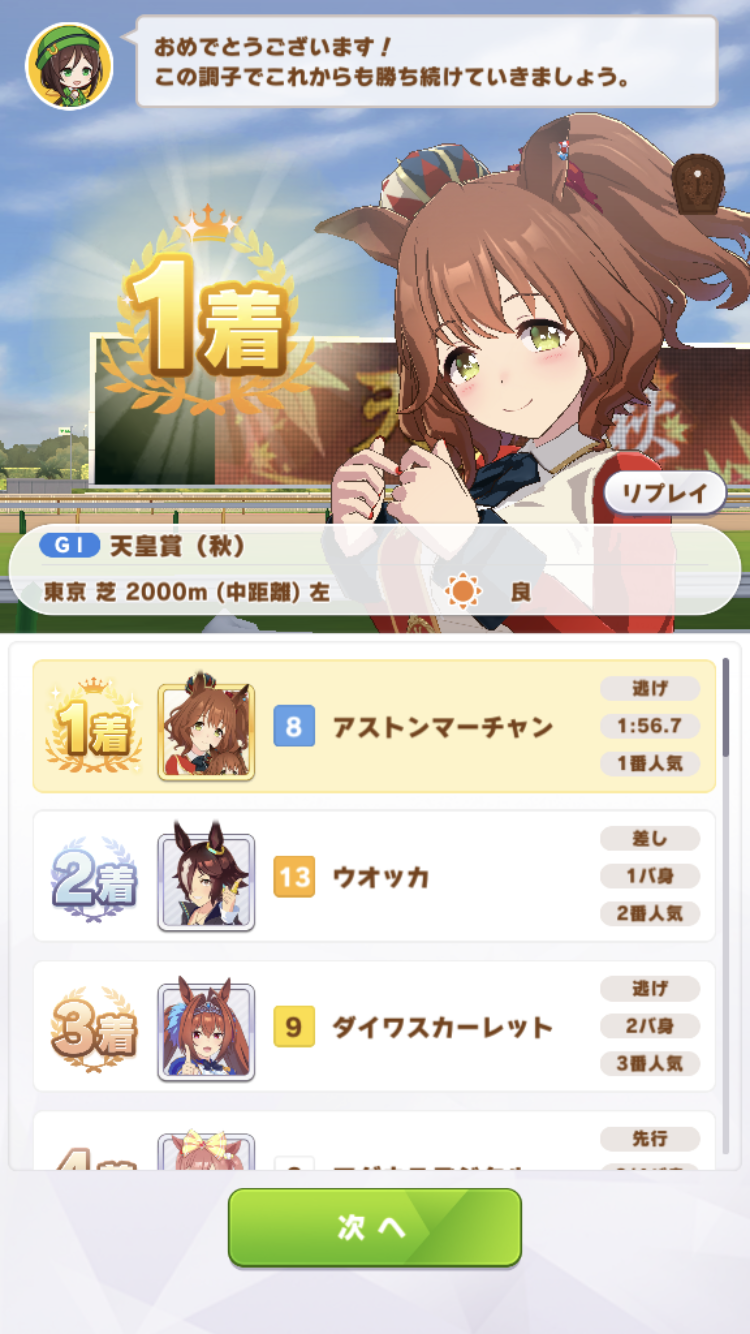 中盤スカーレットに抜かされたけど最終直線で固有発動して差し返したのはアツかった