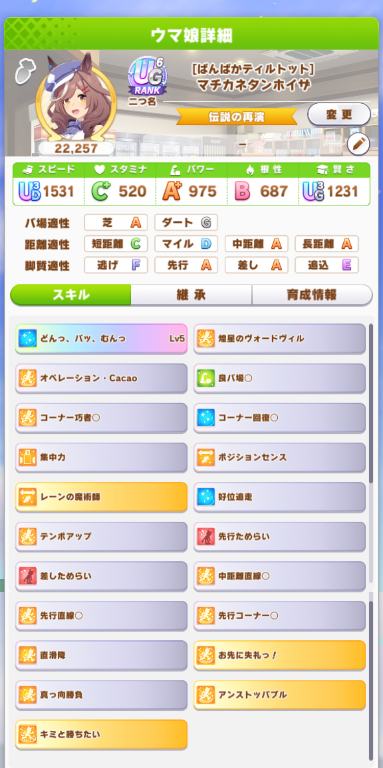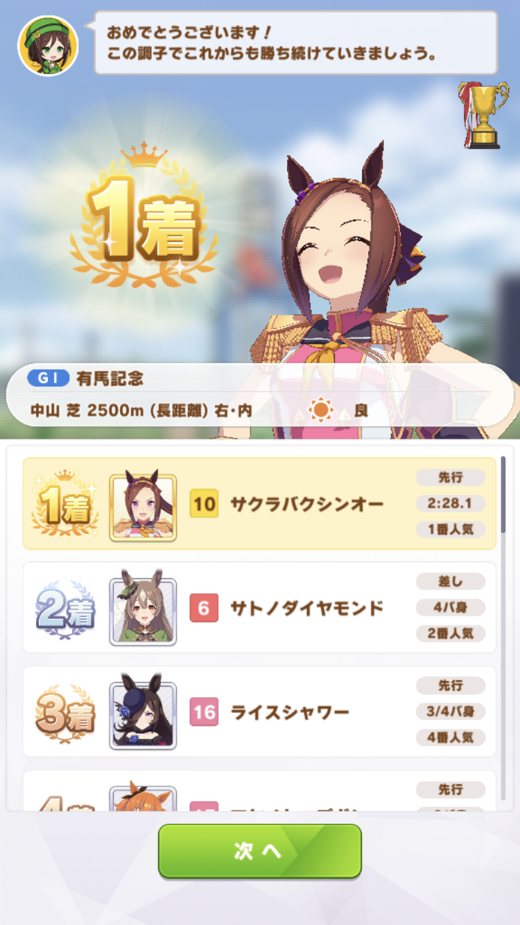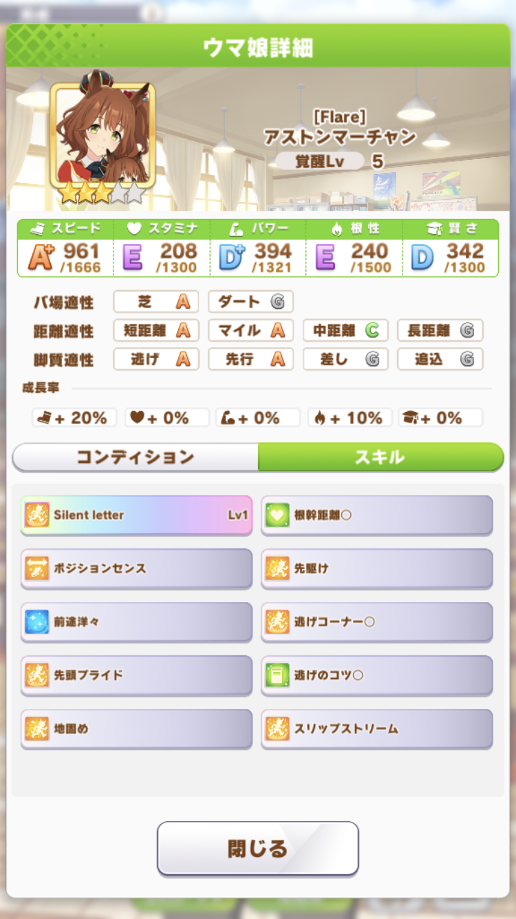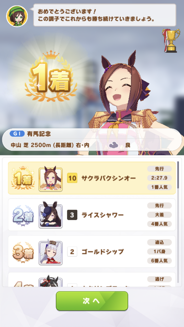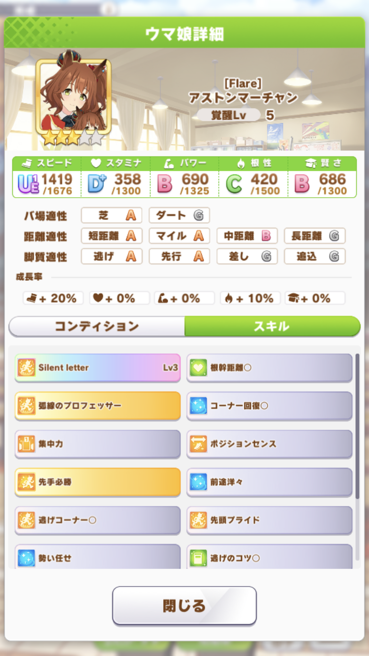 中盤スカーレットに抜かされたけど最終直線で固有発動して差し返したのはアツかった