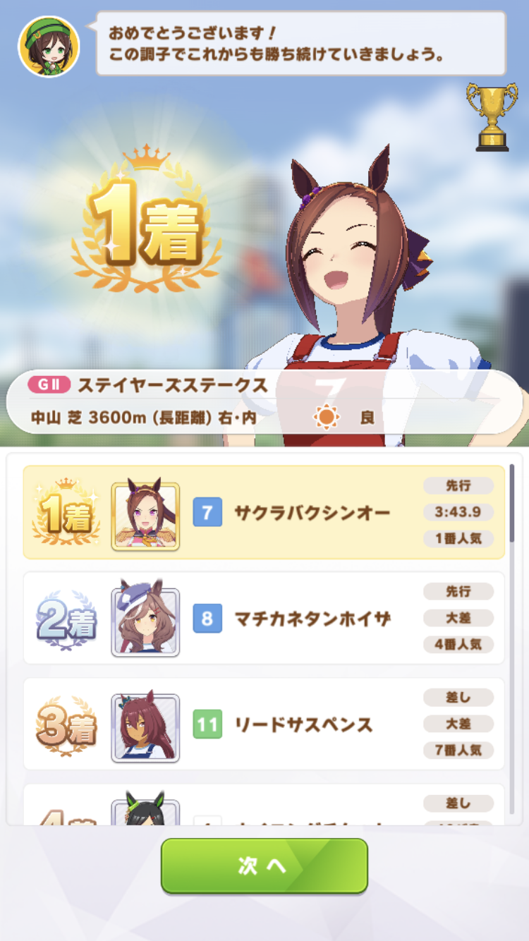 ちなみに回復目的で入れたスタハヤヒデとスピアルダンは完走しませんでした