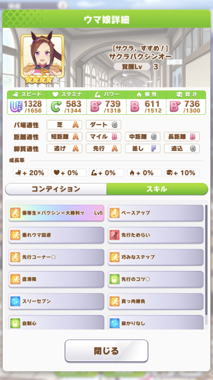 長距離Cでも勝ちやすいけど短距離Cだとスピード盛らないときついイメージ