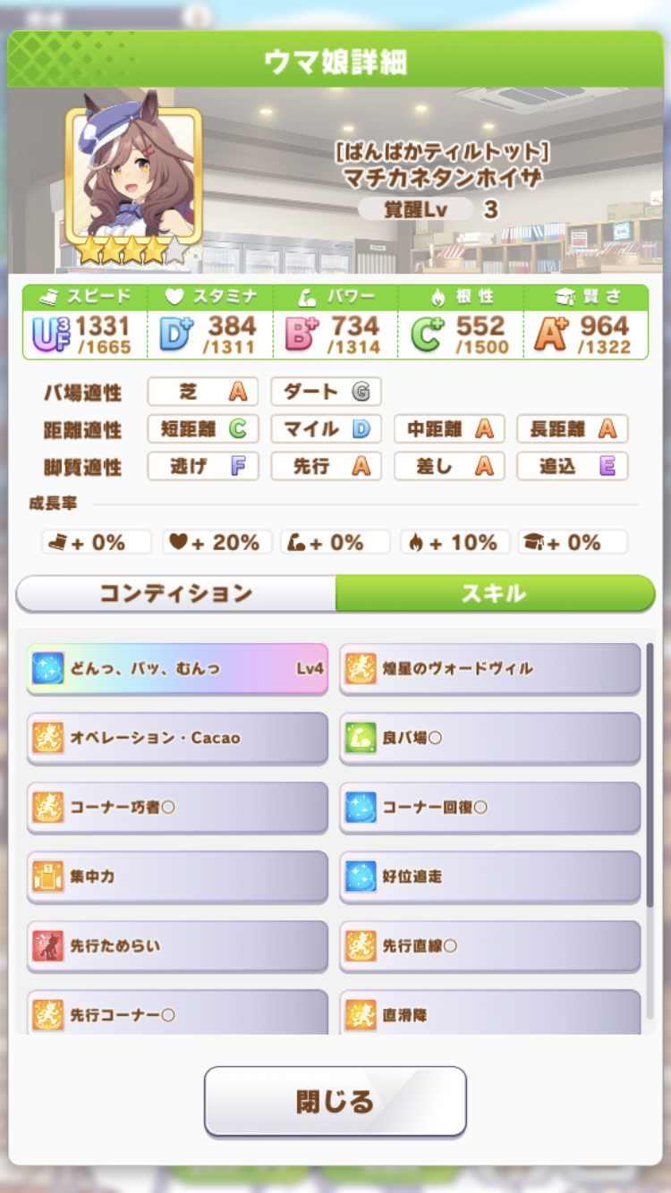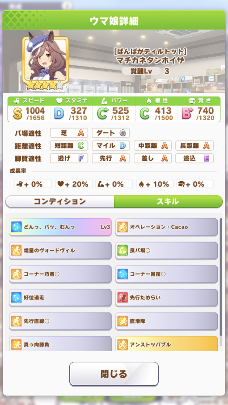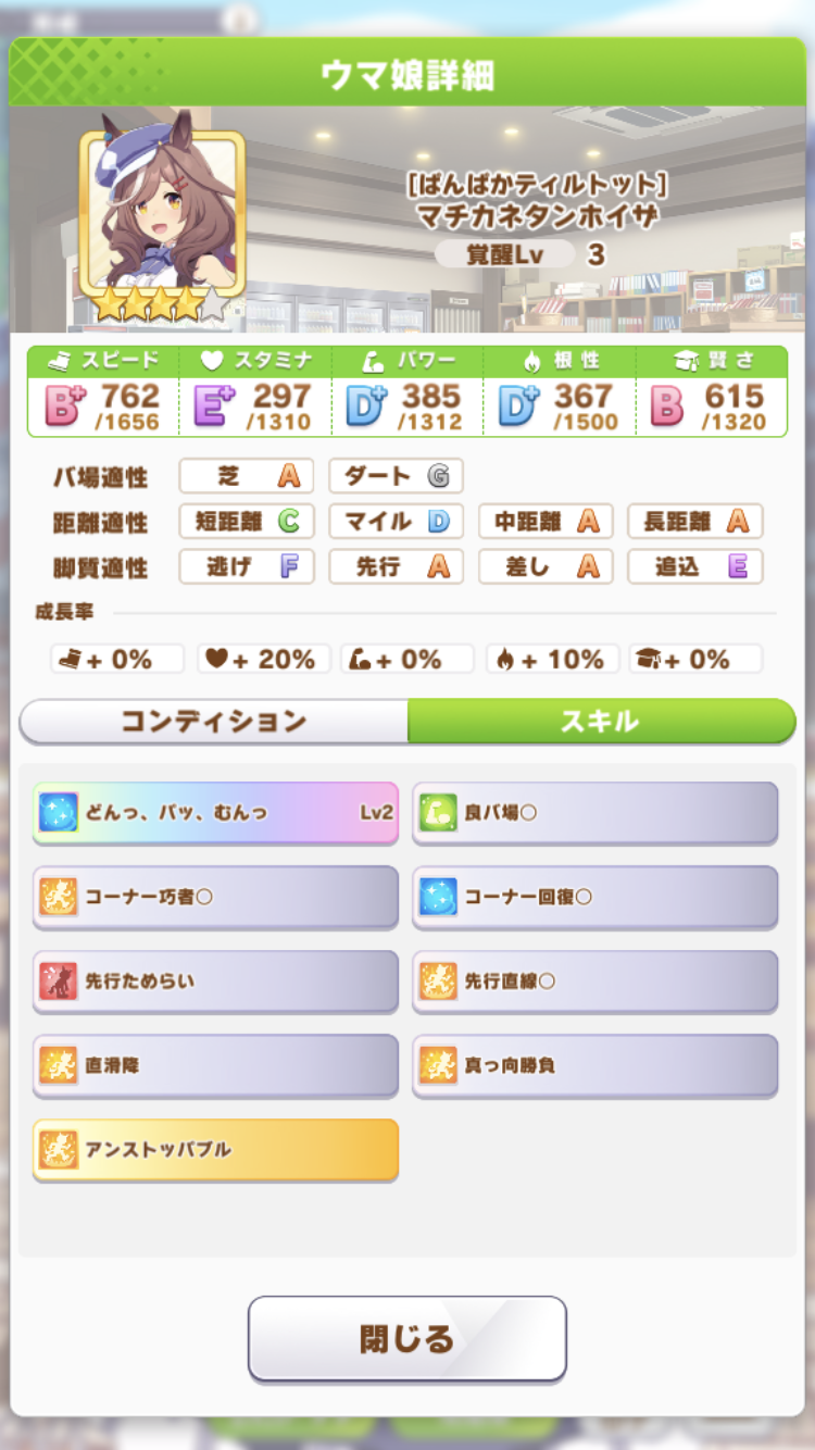 マイルはE以下になるといよいよステイヤー育成しないといけないから上振れない育成だと自然とスピード不足で事故る、スキル次第なところは確かにあるが。ついでにクラシック世代で無理にG1確保狙うと春天でマックイーンとスぺに嬲られる。
