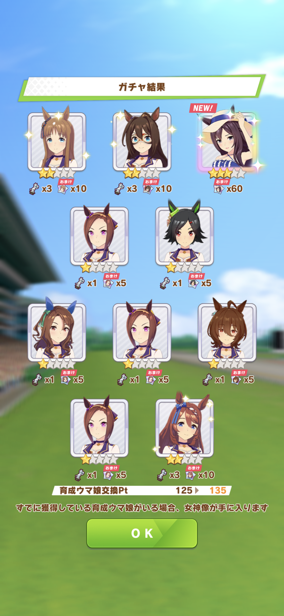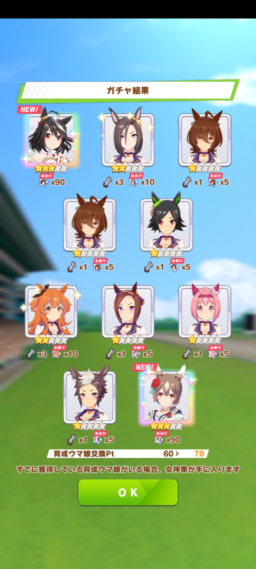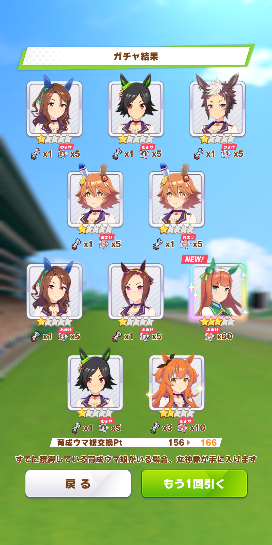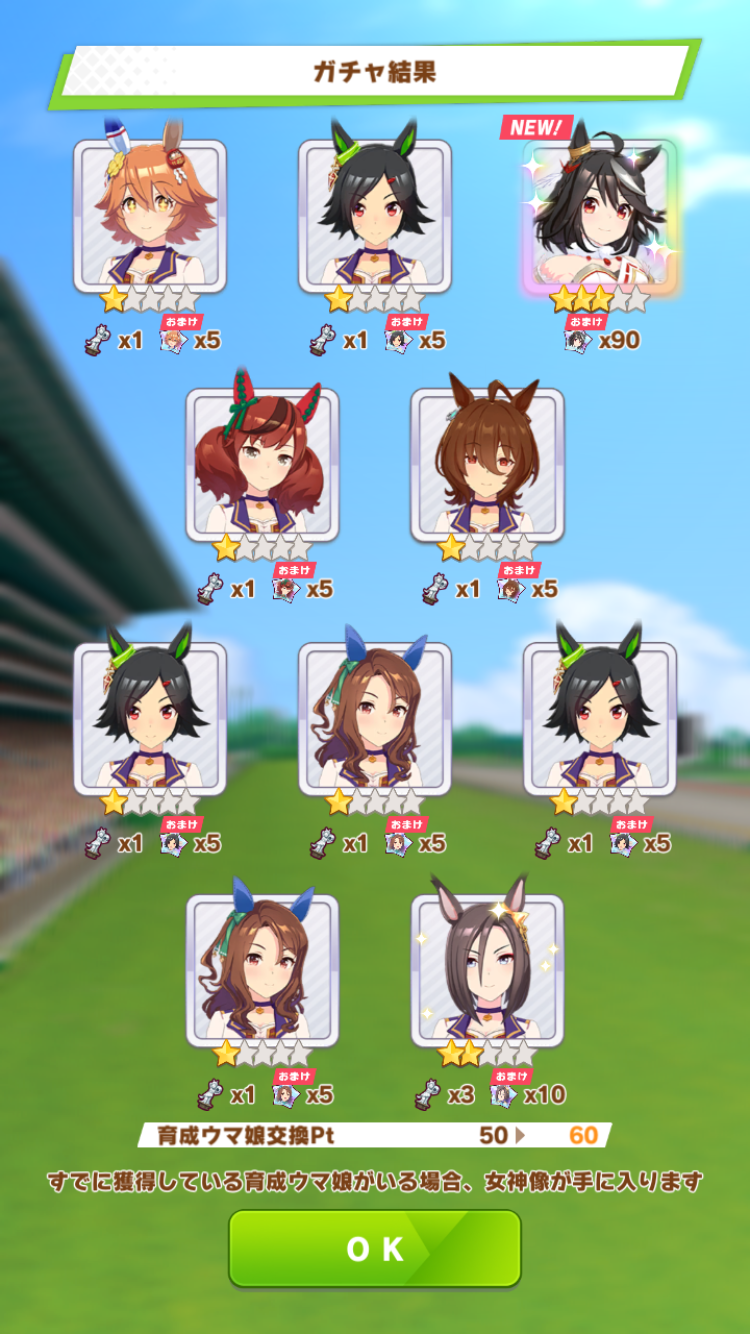 キャラガチャは通常オグリ(未所持)だったからまぁよしかな?