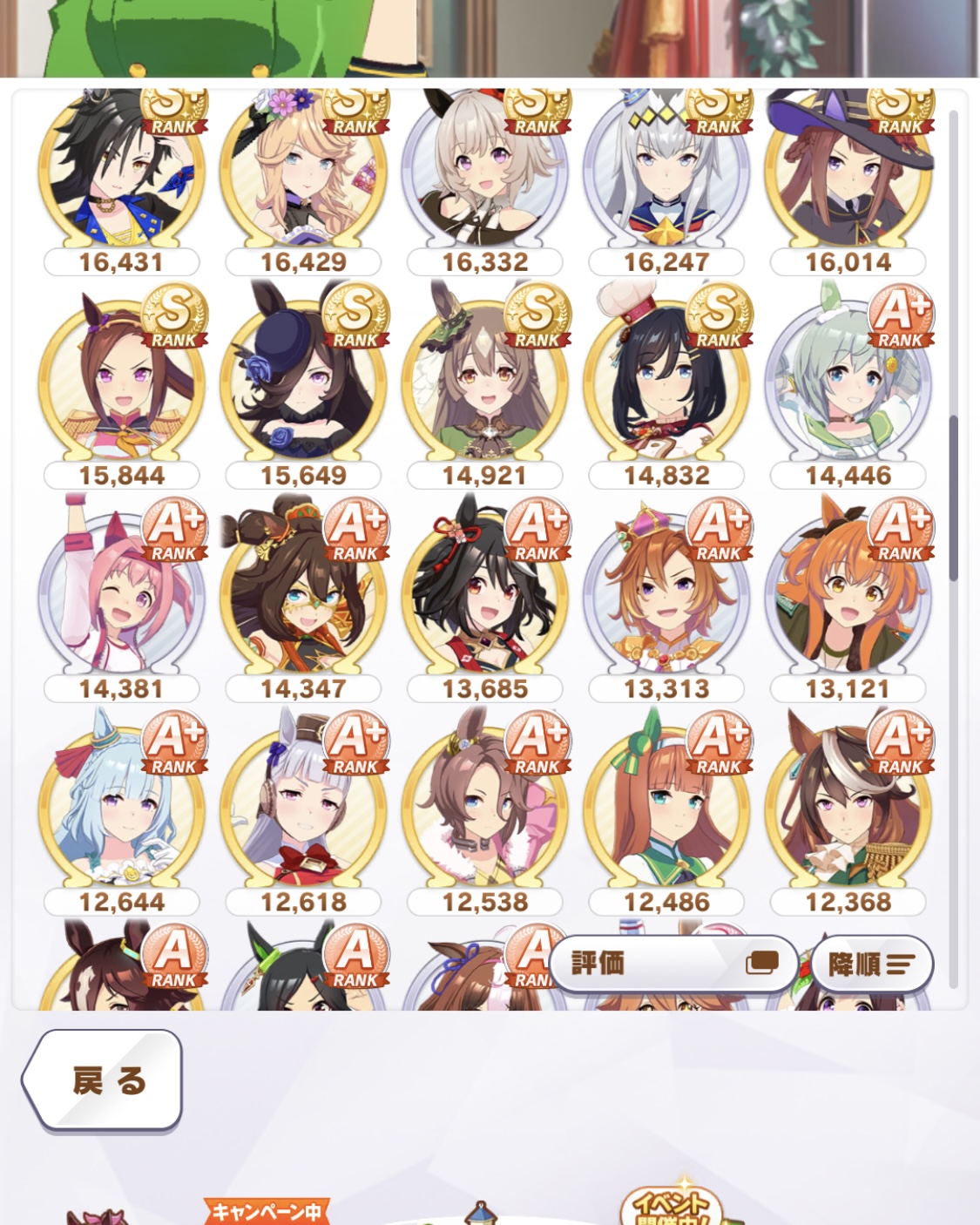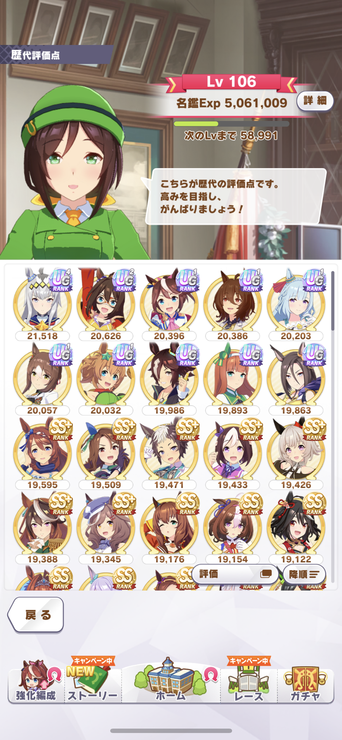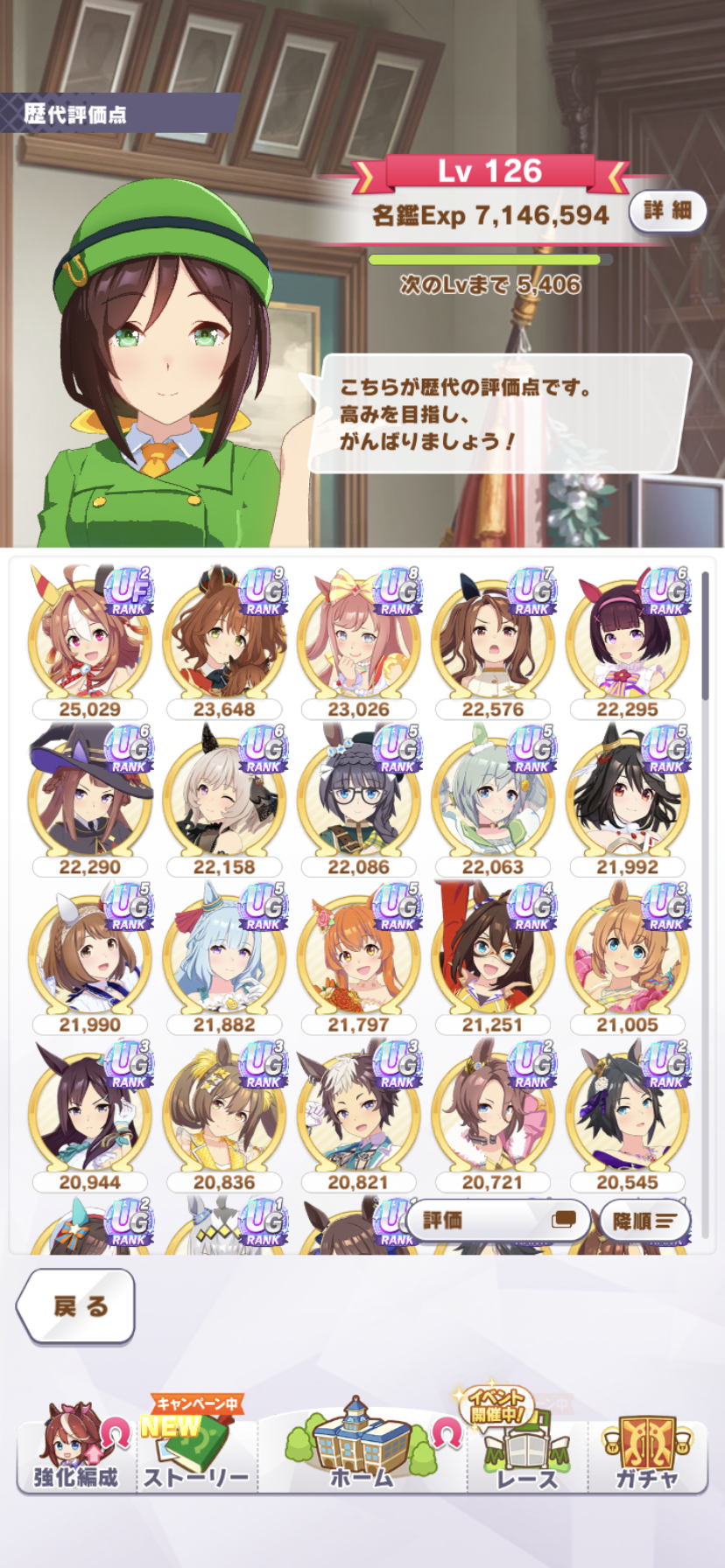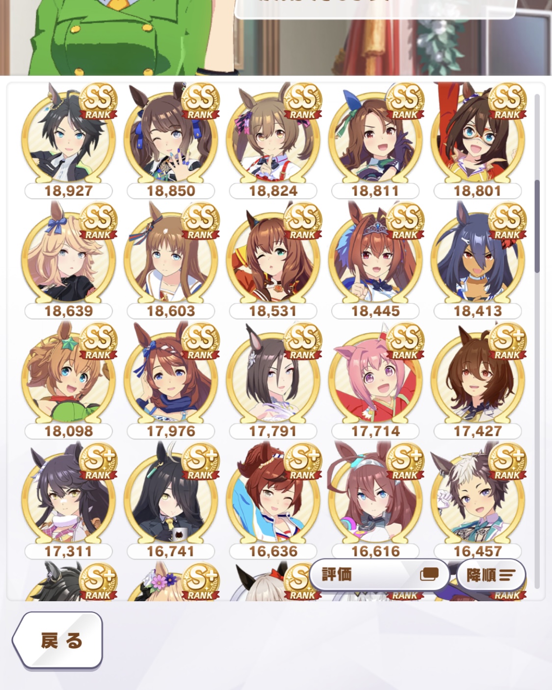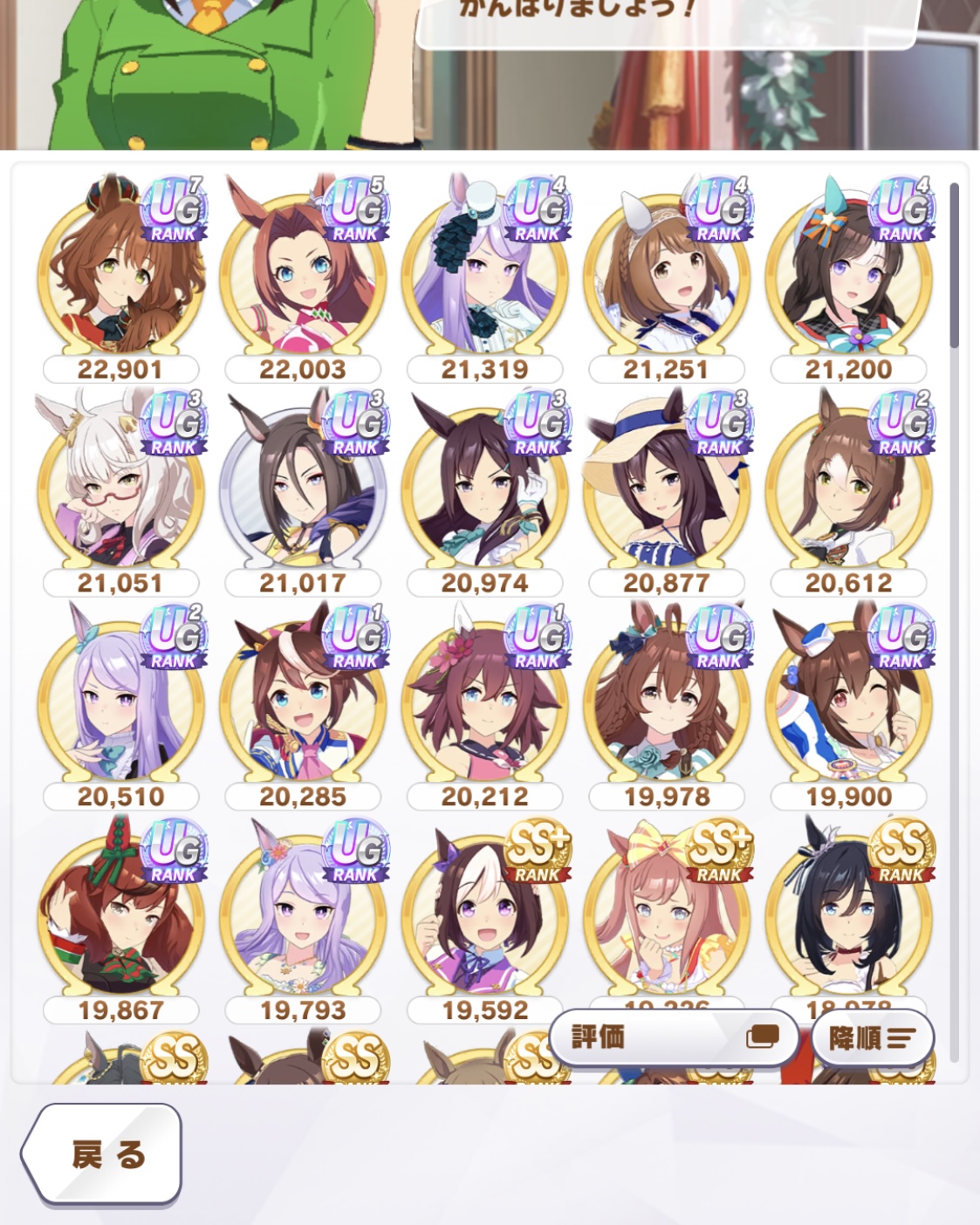 ワイの場合衣装違いにあまり興味がない(本来の勝負服のほうが好き)なのと、チャンミ非ガチ勢だからチャンミ常連キャラ持っていてもあまり育成しないからこんな名鑑になっている